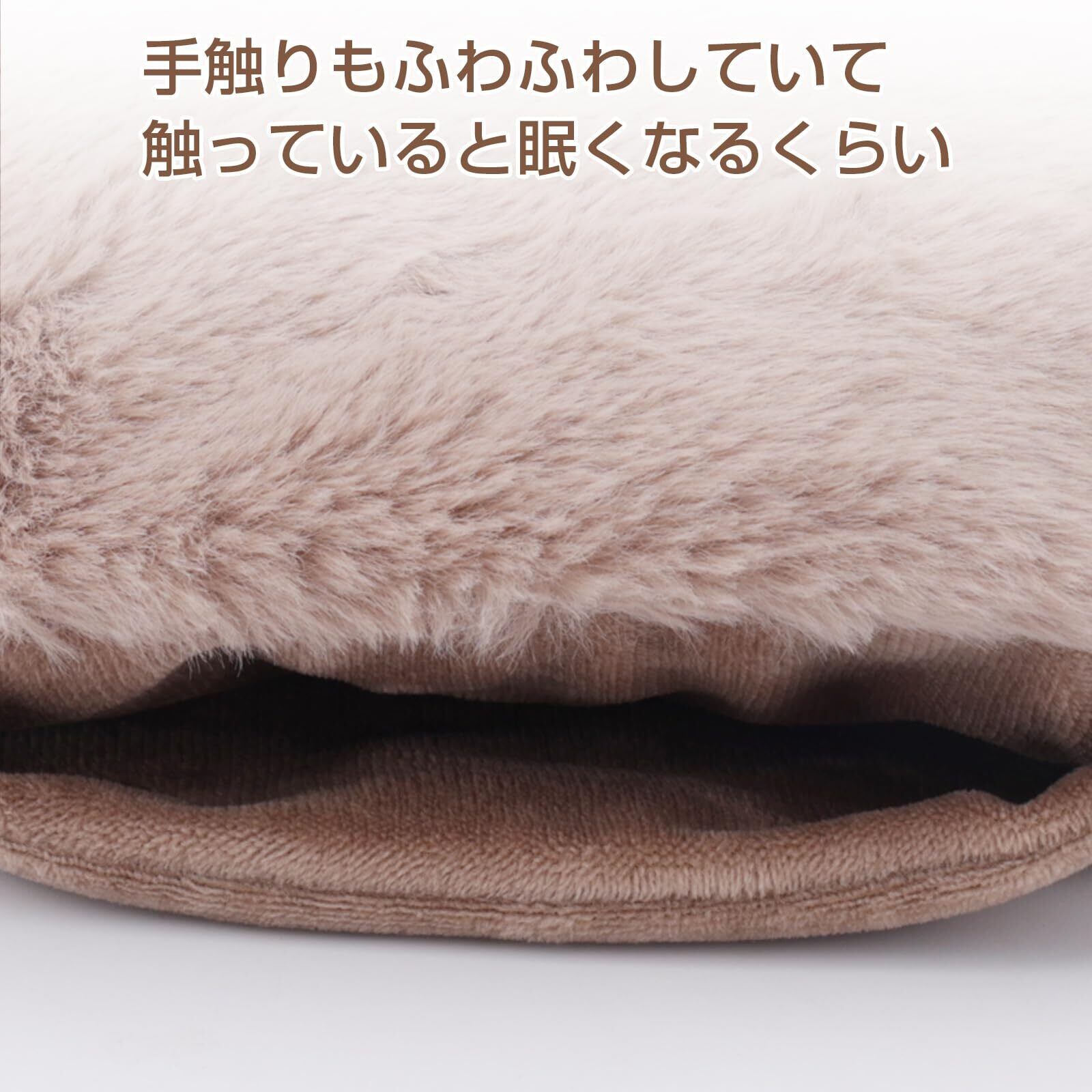 【暖かい・柔らかい】両手を入れて温めることができるポケットが用意された専用カバー付いており、ほどよいあたたかさでお腹や膝上などにおいてもちょうどよく、本体の重たさもそれほどありません。もちろん、カバーは洗濯可能です。