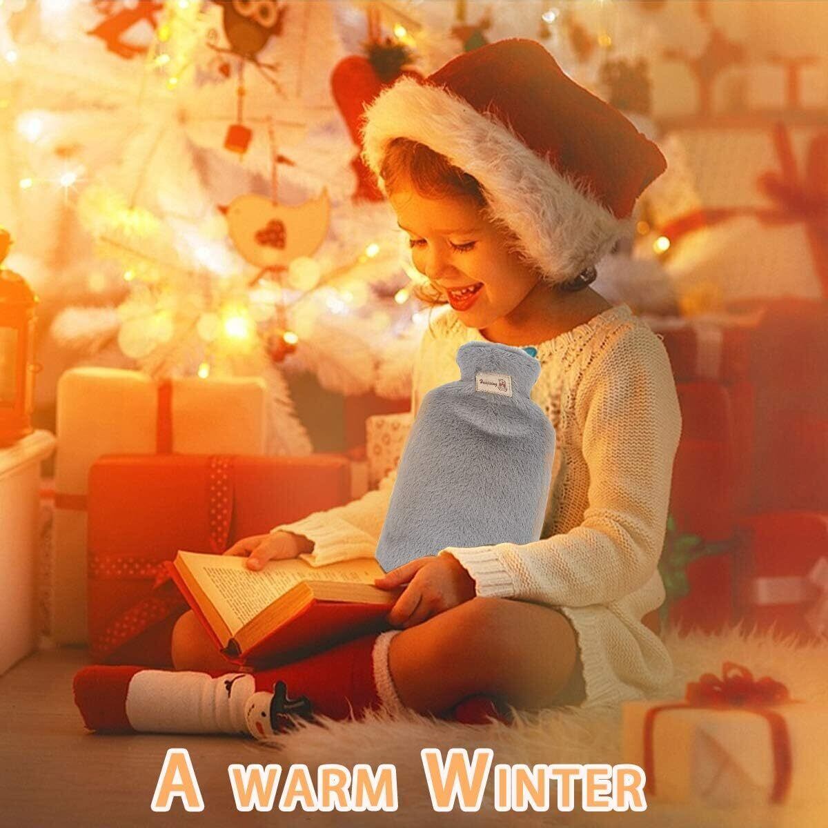 Gsogcax 湯たんぽ 容量2L 注水式 エコゆたんぽ お湯入れ 柔らかく温かいなカバー付き フワフワ ゆたんぽ 暖かい 誕生日 クリスマス ギフト 贈り物 (グレー)