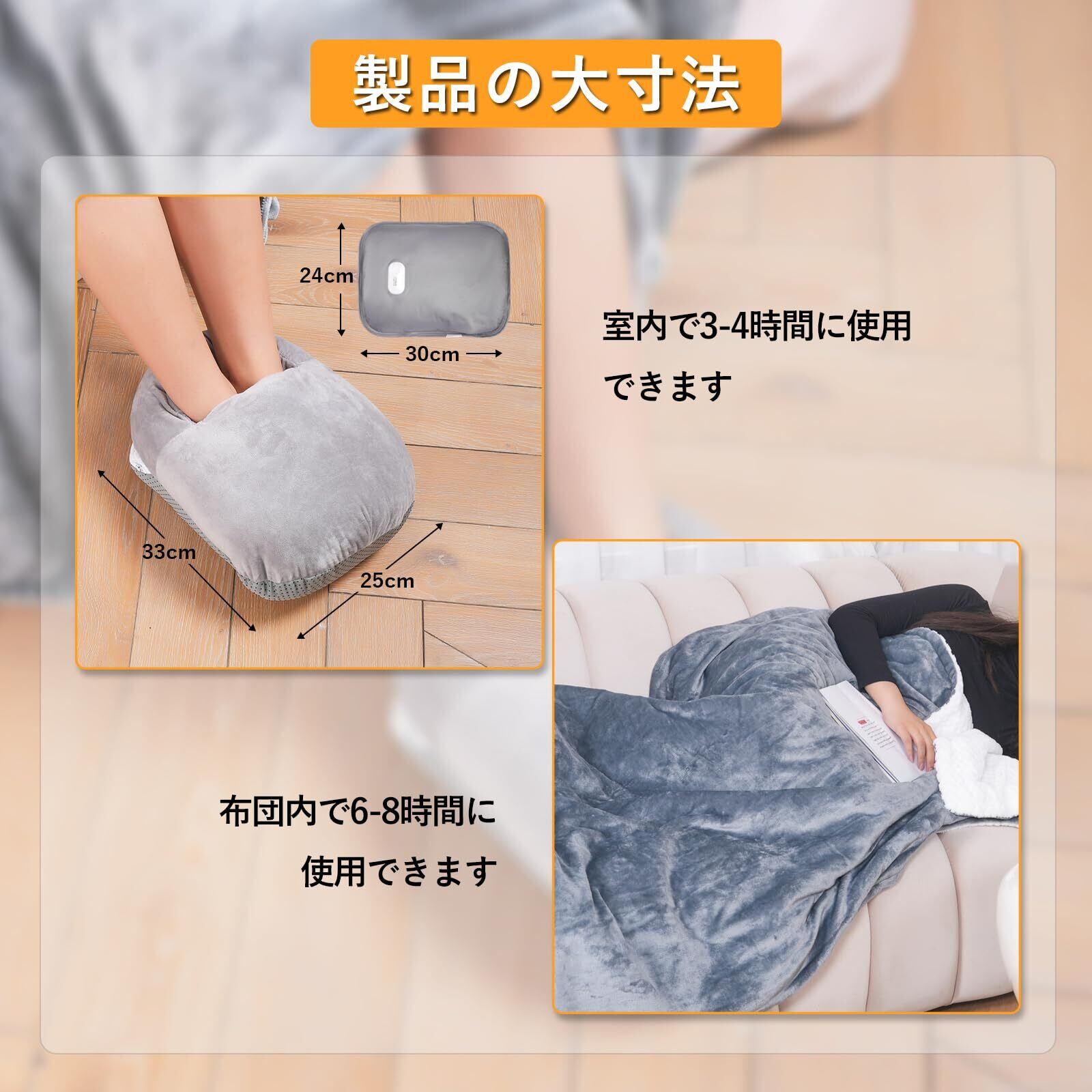 【2WAY充電式ゆたんぽ】専用の足元カバーが付いていて、冷たい季節に足元を温め、快適なくつろぎの瞬間を提供するためにデザインされました。その優れた機能と快適なデザインにより、寒い日々を暖かく包み込むことができます。足カバー内に配置された専用のポケットには、暖かい水袋を挿入できます。水袋が足の底から底部全体に広がり、持続的な温かさを提供します。繰り返し充電できるエコ湯たんぽ。またコードレス湯たんぽになりますので、室内だけでなく、アウトドアシーンでも便利に活用する事が出来ます。
