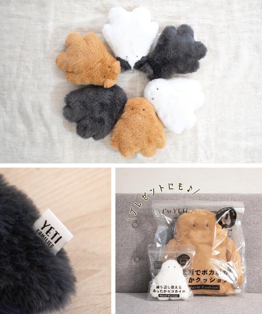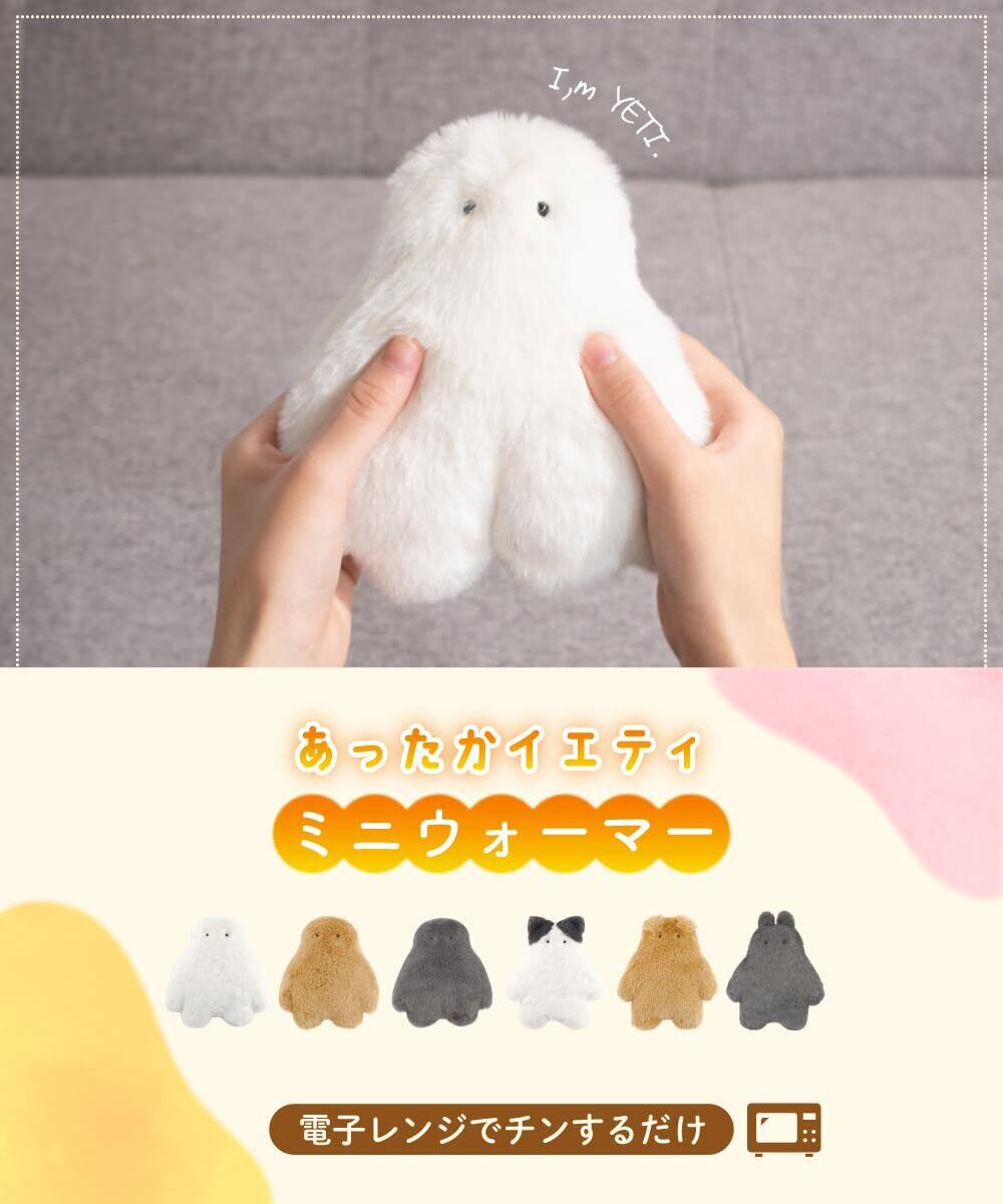 『ふかふか可愛いイエティのエコカイロ』ぬいぐるみのようにふかふかで可愛いイエティのエコカイロ。見ているだけでもかわいい、手のひらサイズのミニハンドウォーマーです。やさしく手元をあたため、ずっと撫でていたくなる気持ちのいい肌触りが魅力。寒い季節に一緒に過ごしたいあったかグッズです。可愛くてちょっと不思議なイエティのゆるい表情とふんわりとした質感は、見ているだけでも心が和みます。お家やオフィスでのリラックスタイムにぴったり!ポケットに入るミニサイズなので持ち運びもしやすいです。