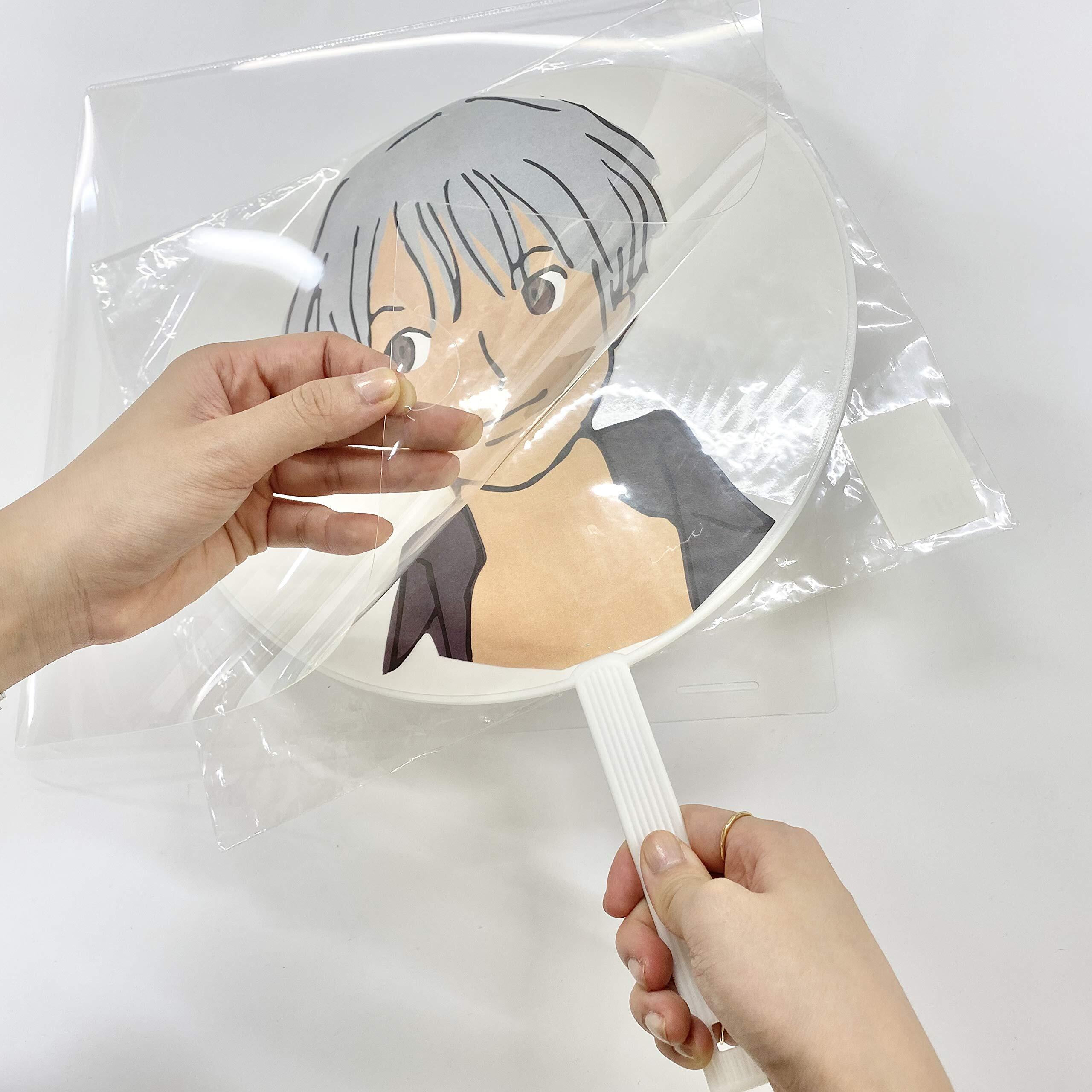 そんなお客様への強い味方! ケースはハード素材で出来ており、2辺開きなのでうちわの出し入れがしやすく、しかもOPP袋ごと入るので、ワンタッチのストッパーを閉じれば簡単にきれいな状態のまま持ち運べます!