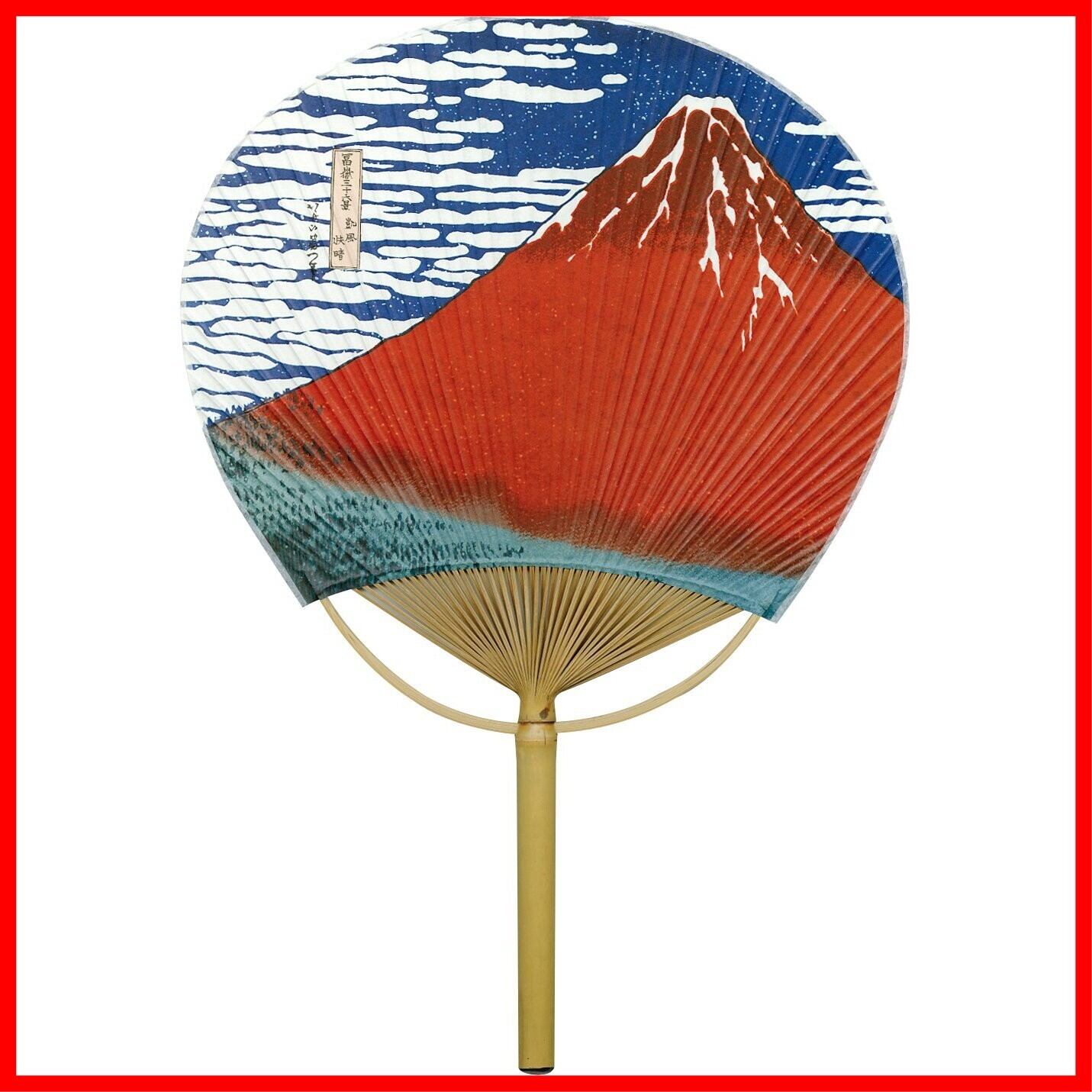 【在庫処分】四国団扇 うちわ 北斎 赤 富士