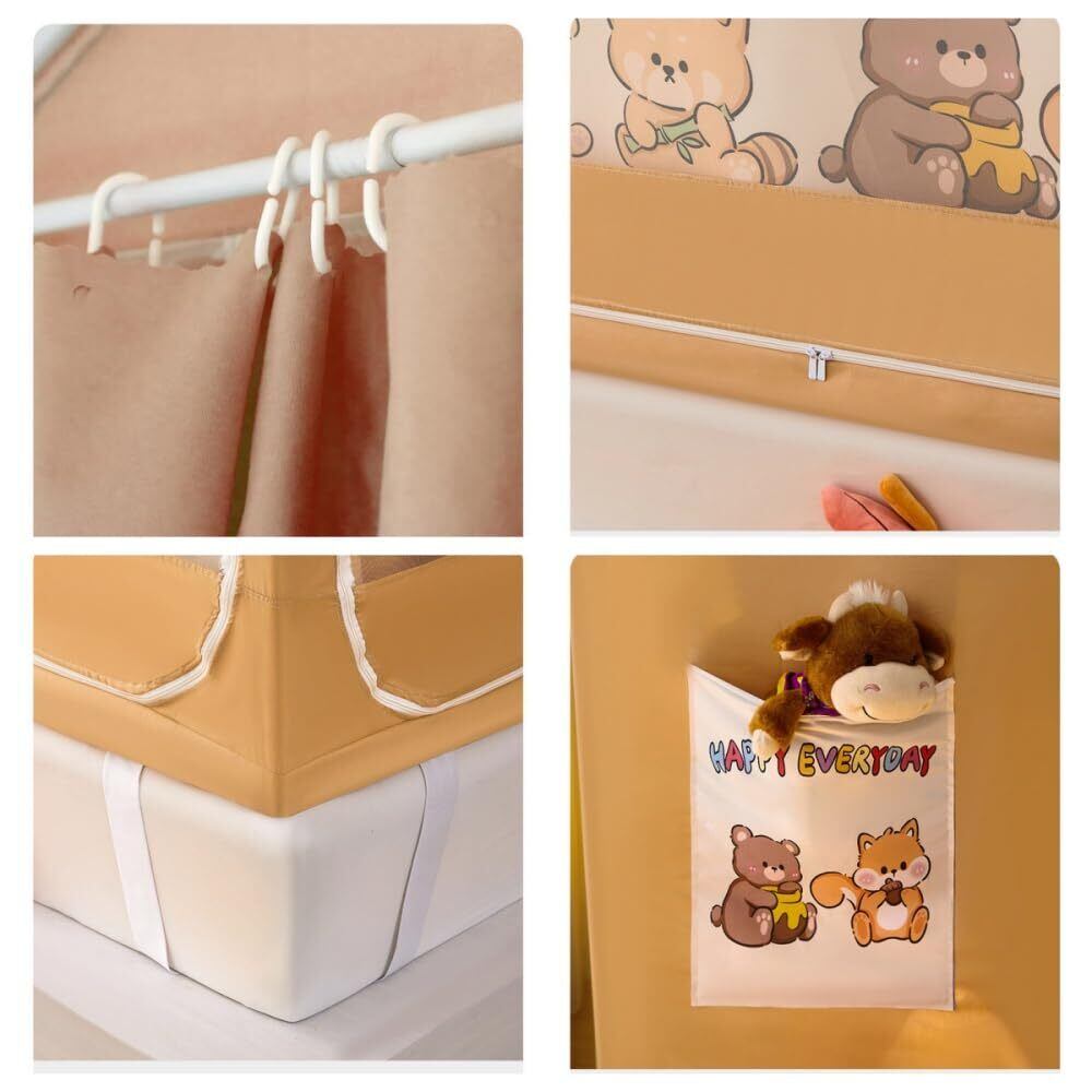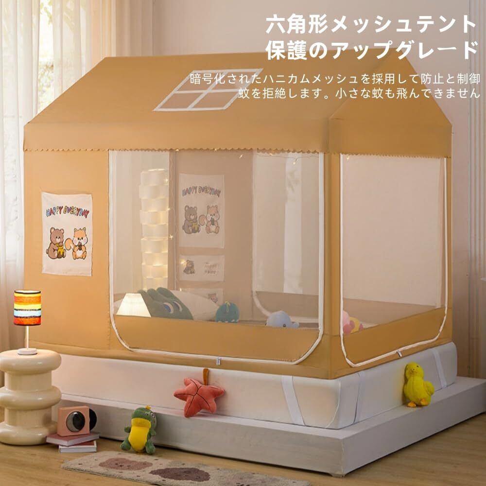 Deronder蚊帳 室内カーテン 子供テント ベッドテント 全方位ガード 3ドア設計 睡眠テント 秘密基地 多機能 網目は細かい 遮光 通気性 防虫 防蚊 防塵 天蓋付き 組み立て簡単 四角型 大空間 かわいい 子供用 子供部屋 ベッドルーム (イエロー,180*200cm)