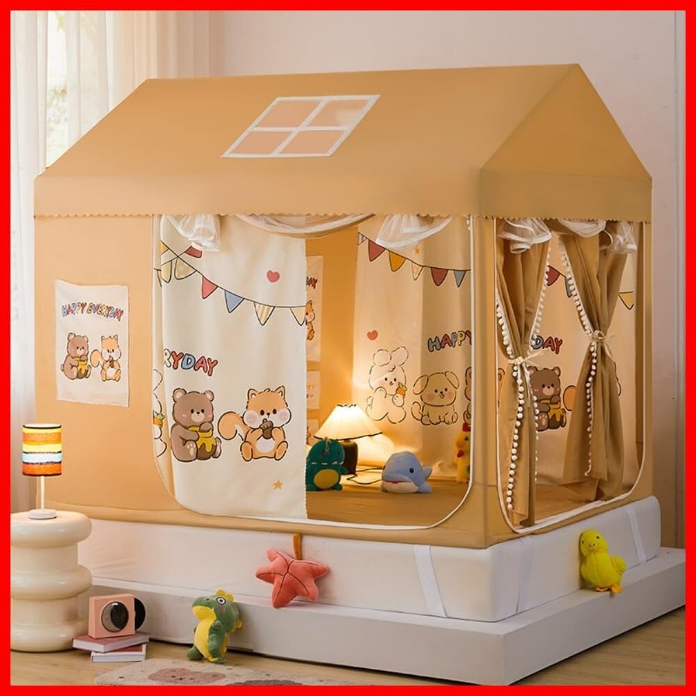 「子供たちの夢の世界を、Deronderの室内テント蚊帳で実現しませんか?」/特徴:この蚊帳は、可愛らしいデザインと機能的な構造が魅力で、お部屋をおしゃれに彩りながら、安心して快適な睡眠環境を提供します。細かいメッシュ加工により外からの虫をしっかりブロックし、通気性も抜群で、快適に過ごせる空間を作ります。