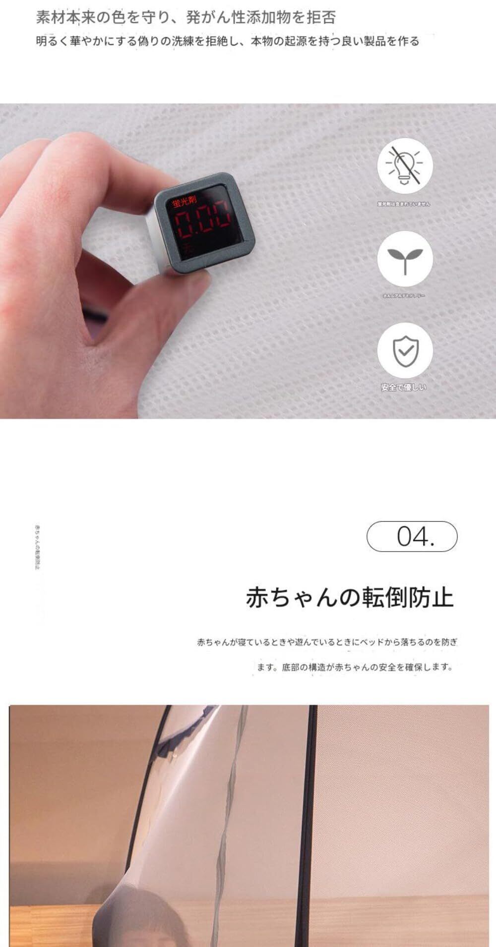 簡単な設置と収納: 組み立てが非常に簡単で、専用の工具を必要とせず、説明書に沿って数分でセットアップできます。 また、収納時にはコンパクトに折りたため、スペースを節約します。 洗濯も簡単で、定期的な清掃が容易です。