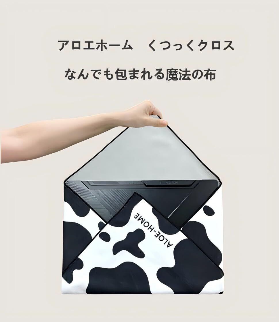 aloe-homeくっつくクロスくつっくタオル 超便利風呂敷 化粧品弁当箱カメラIPADなど包む 吸水 保温 50*50cmカメラ保護 レンズ保護 IPAD保護 化粧品収納 風呂敷 ペタペタ布 マジッククロス (乳牛)
