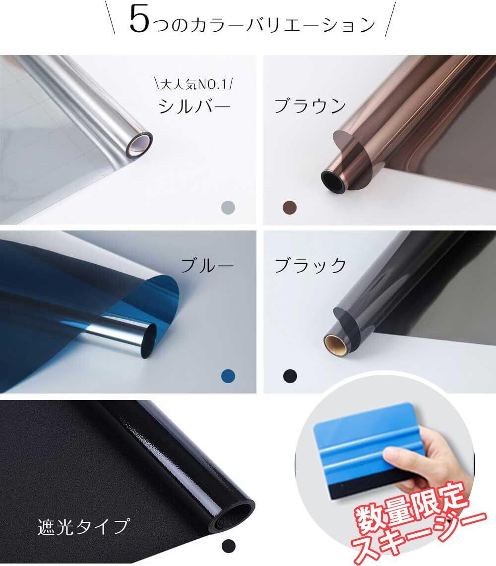 サイズ:90x200cm×2本、特徴:断熱・UVカット・飛散防止、水貼り、ミラーフィルム