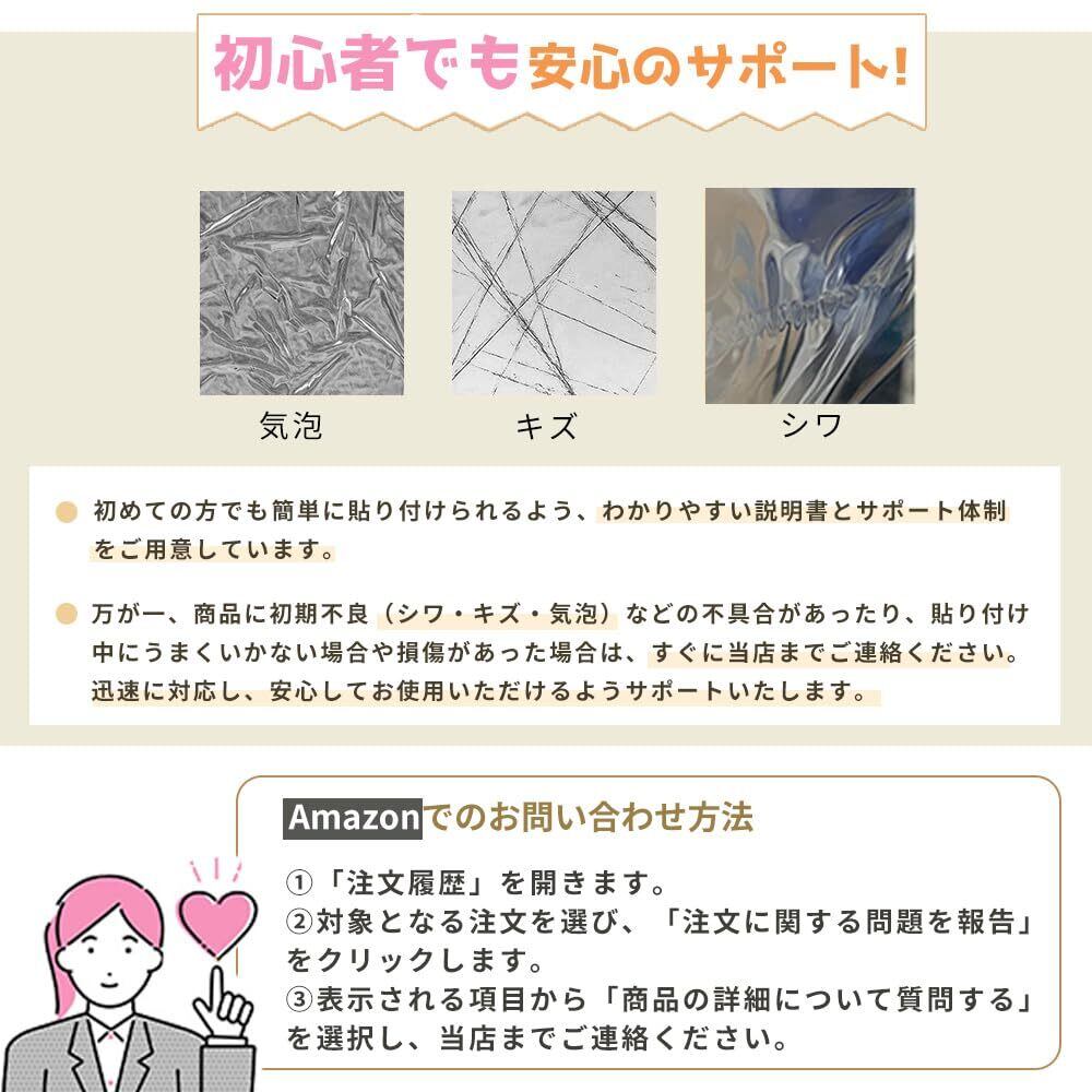【貼り付け成功+180日間あんしん】 初心者の方でも安心して貼れるよう、貼り付け成功をご用意しております。貼り付け中に失敗や損傷があった場合は、すぐに当店までご連絡ください。無料で新品を再送いたします。 当店の商品は高品質に自信があるため、ご購入日より180日間の安心を実施しております。 商品に初期不良(シワ、キズ、気泡など)があった場合は、購入日より14日以内にご連絡いただければ、新品交換または返品にて対応いたします。 ※サイズのカット間違いや気泡の除去方法などは対象外です。