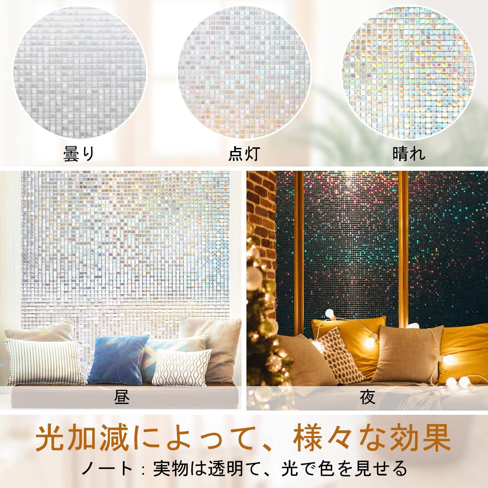 このフィルムは、モザイクデザインが美しいアクセントとなり、リビングや寝室、キッチンなど多様な空間にマッチします。光を透過しつつも視界を遮るため、安心して過ごすことができる空間を提供します。