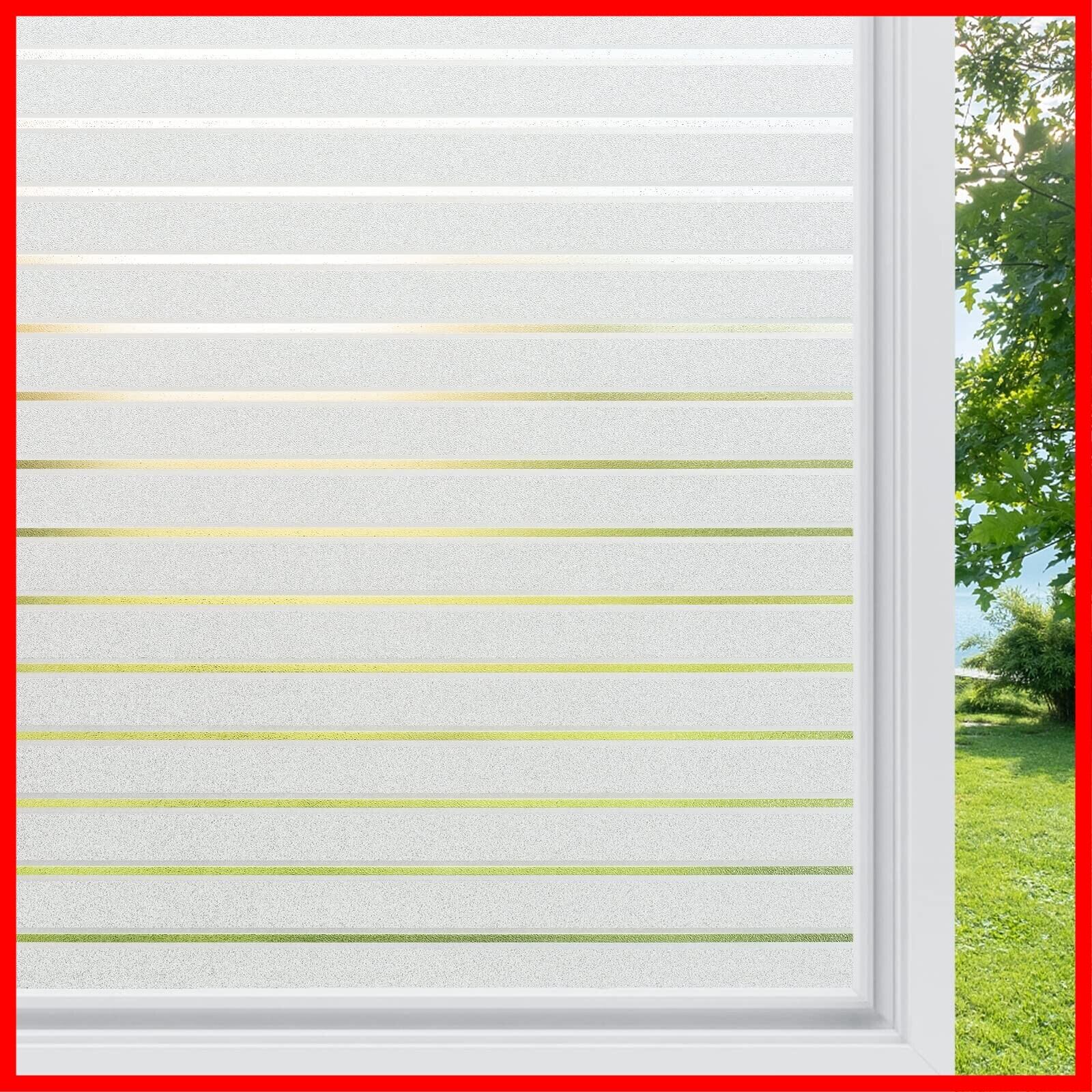 Rabbitgoo 窓ガラス目隠しフィルム 目隠しシート 窓フィルム ストライプ 窓 めかくしシート uvカット 結露防止 断熱 飛散防止 水で貼り付け簡単 ガラスフィルム 跡なくはがせる オフィス事務室会議室の視線阻隔 すりガラス調(90x200cm)