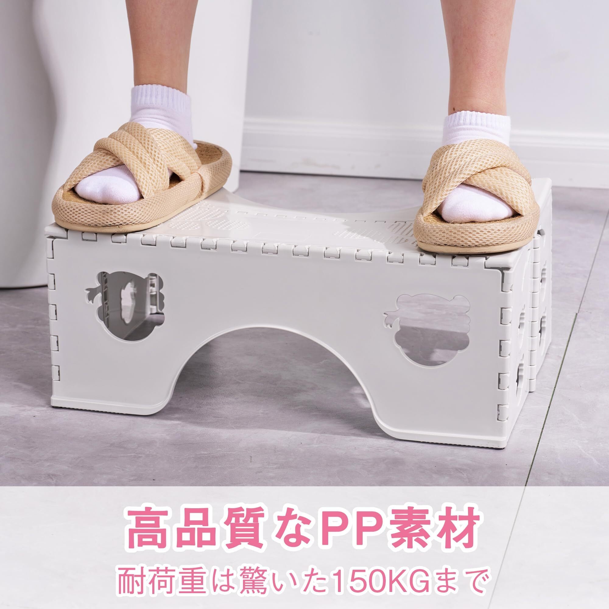 【安全設計】 安定性と快適さを両立したトイレ踏み台で、滑り止めゴム付きのエンボス加工表面が地面としっかり固定し、床を傷つけなく安心して利用できます。素材は無毒で頑丈なPP素材で安心してお使いいただけます。