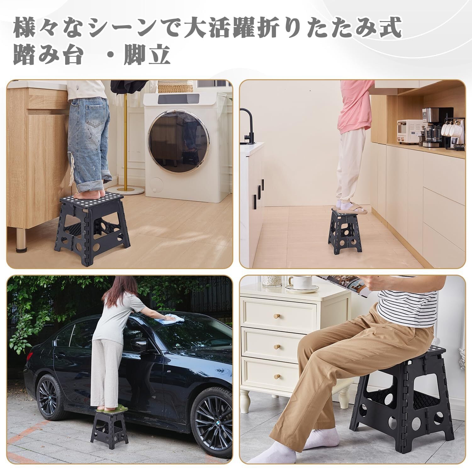 室内では高い棚の物を取る際や、屋外ではキャンプや洗車時のステップとして役立ちます。お子様のトイレトレーニングや足置きとしても最適で、幅広い用途で活躍します。