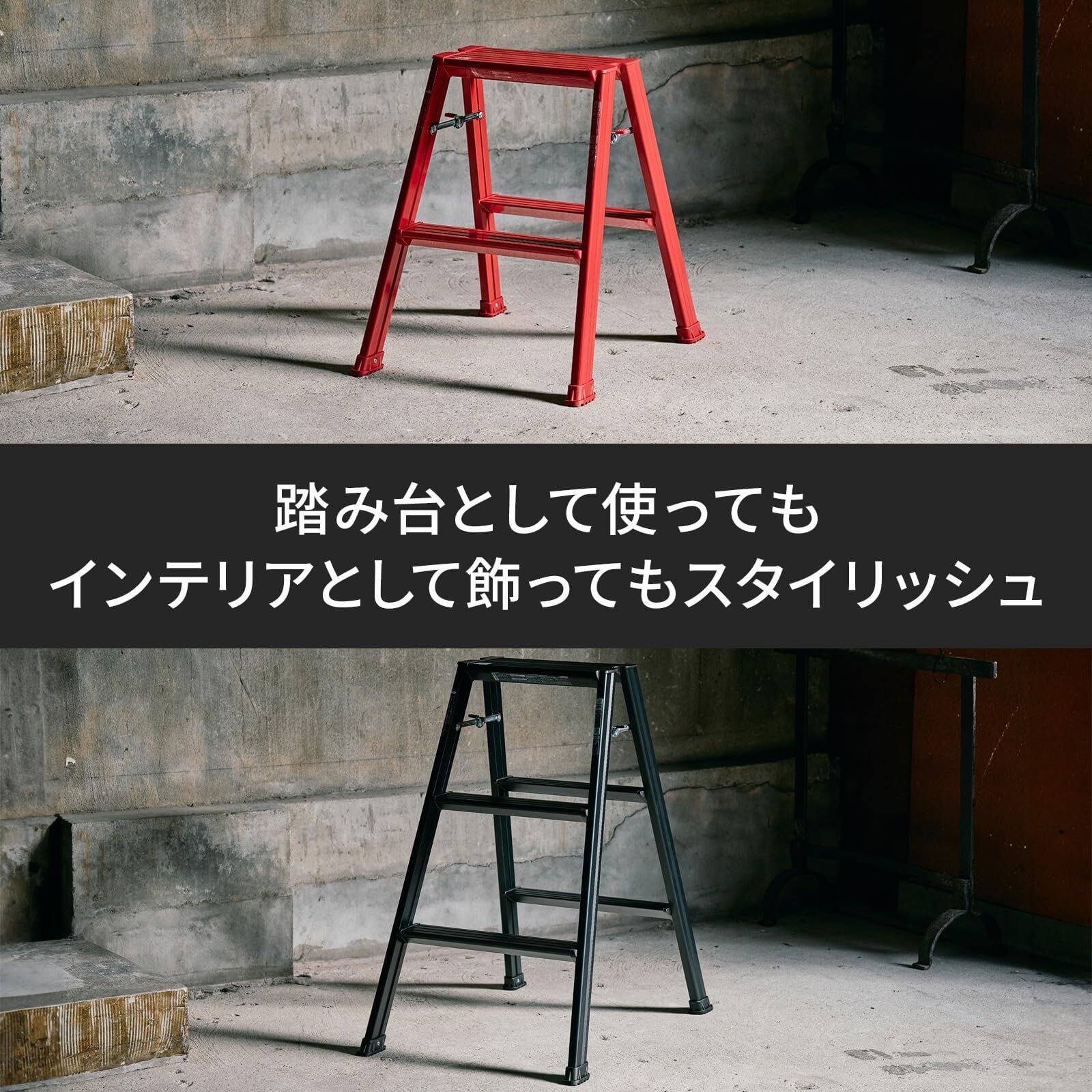 この脚立は、キッチンでの料理や整理整頓、リビングルームの掃除、バスルームでの手の届きにくい場所へのアクセスなど、さまざまなシーンで大活躍します。インテリアとしても映える美しいレッドカラーは、部屋の雰囲気に華やかさを添えます。
