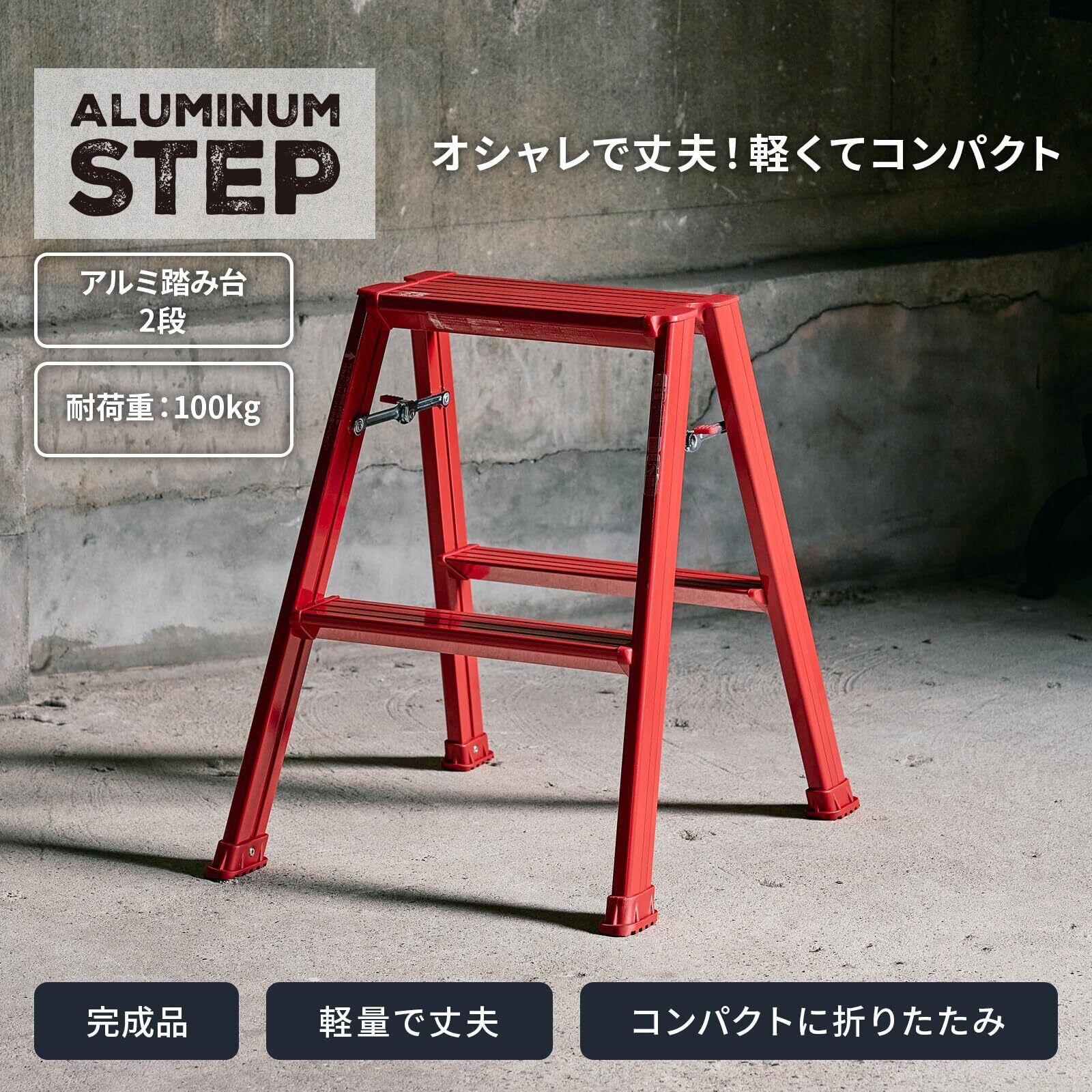 天馬(Tenma) 置くだけでグッとオシャレになるアルミ脚立 ステップラダー 軽くて丈夫 アルミ製 コンパクトになる折りたたみ式 【色 レッド】 【段数 踏み台2段】 【幅47×奥行57×高さ55cm】