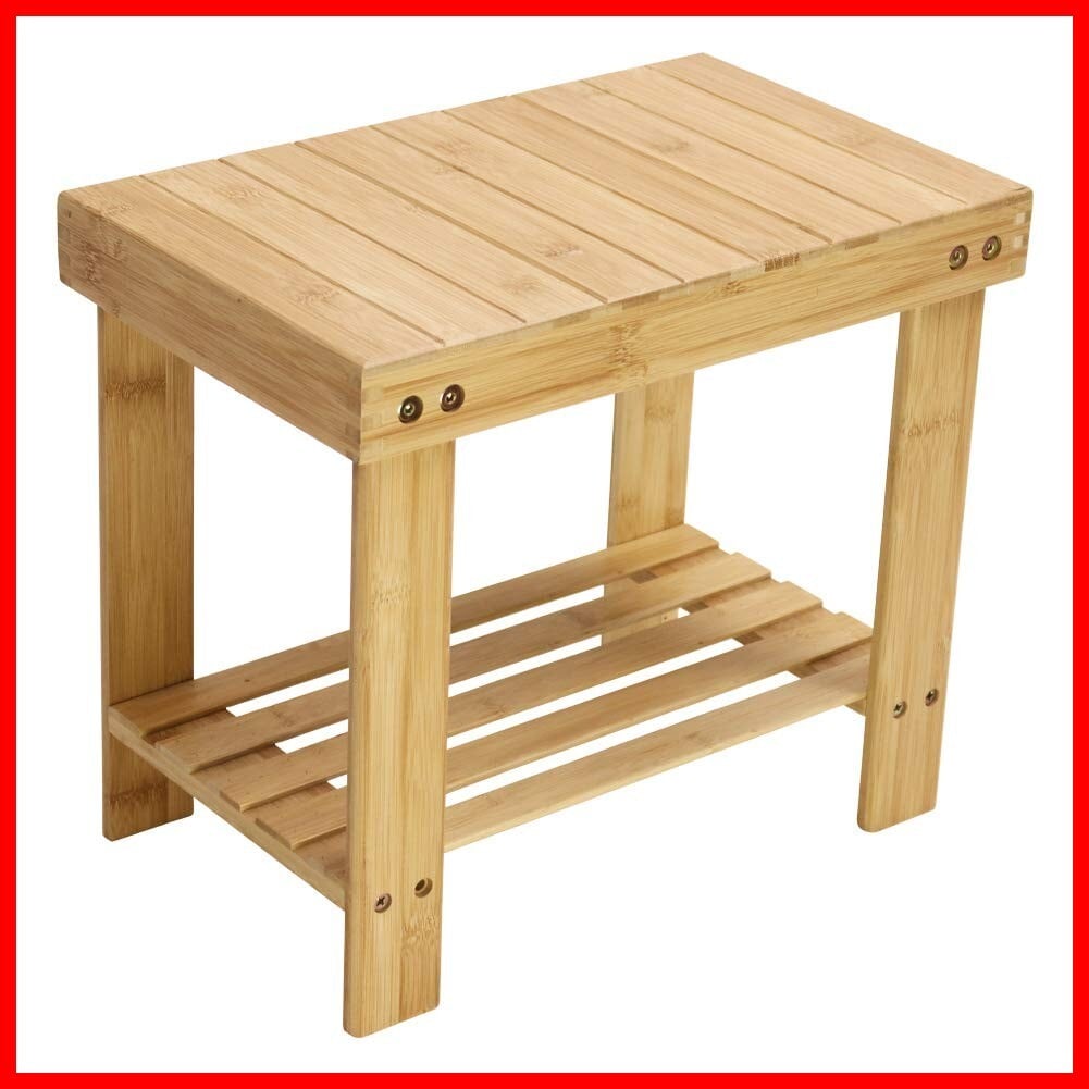 KKTONER 竹製踏み台 物置棚 収納スツール 靴収納 玄関小物 浴室バースルームフットスツール 玄関ベンチ シューズラック ナチュラル(自然色)
