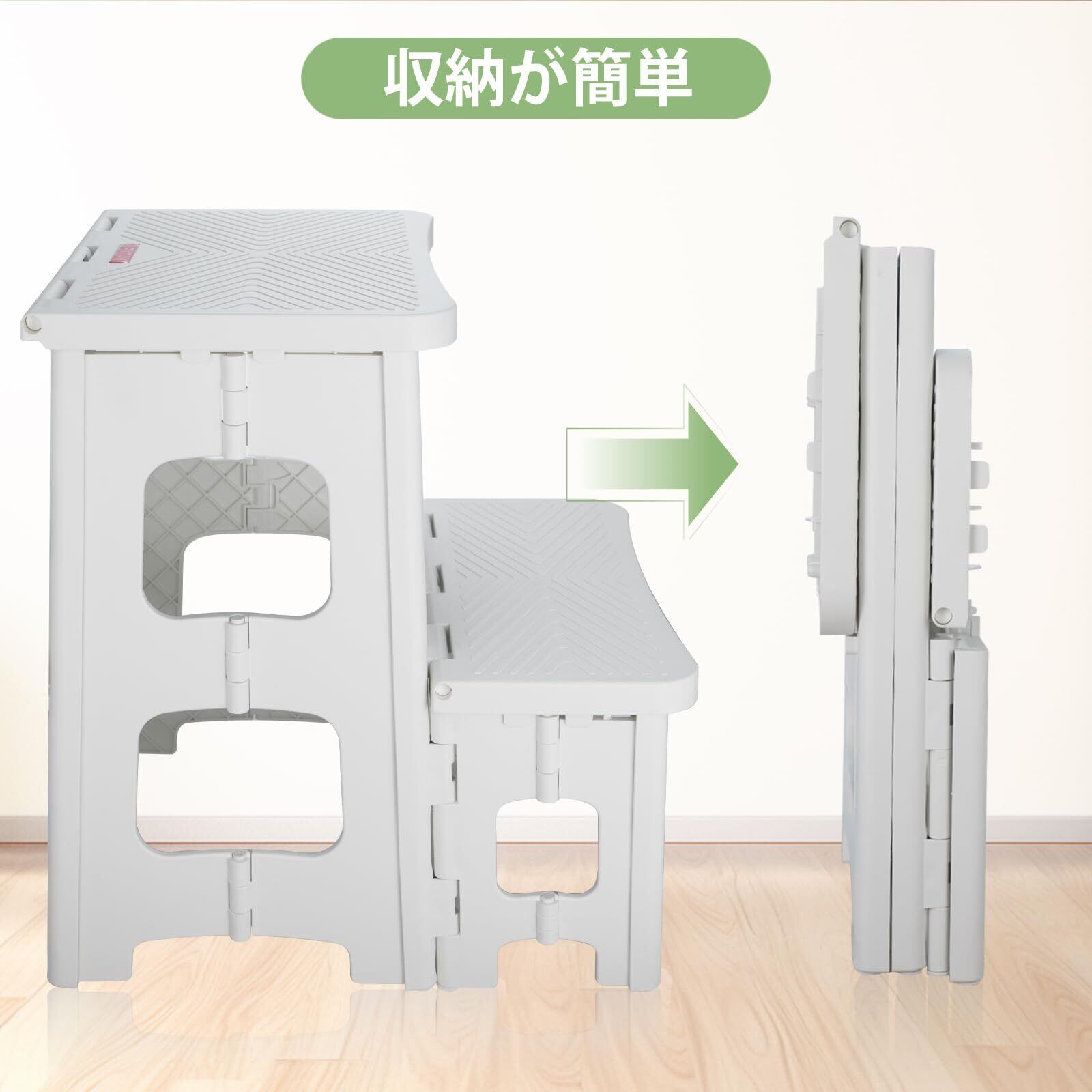 洗面所や台所での作業はもちろん、玄関での靴の脱ぎ履き、ベランダでの植物のお手入れなど、非常に幅広い用途に活躍します。コンパクトなデザインにより、使用後はすぐに折りたたんで収納できます。