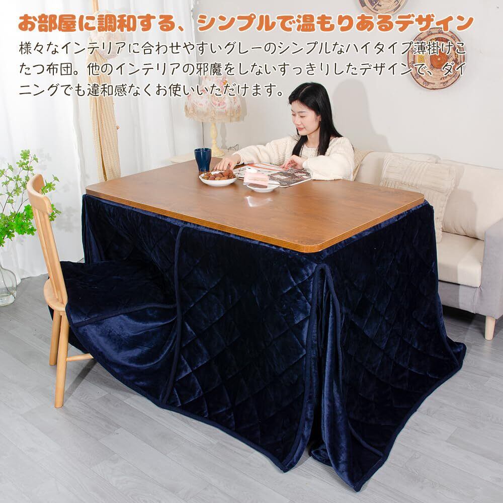 JEMA ハイタイプ こたつ布団 単品 ダイニングこたつ布団 テーブル用 ダイニングコタツ布団 省スペース 長方形 掛け布団 こたつ掛け布団 吸湿発熱 洗える ふわふわ感触 無地 フランネル素材 グレー 約240x295cm