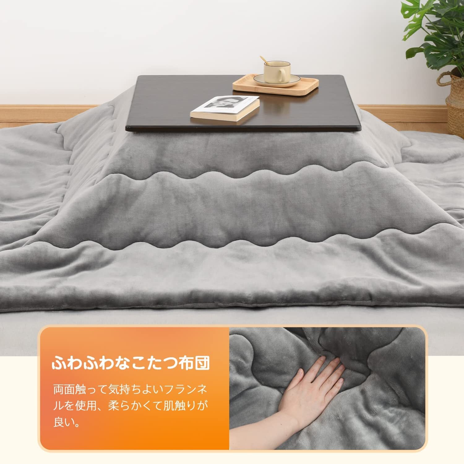 【在庫セール】クモリ(Kumori) こたつ布団 185X185cm 単品売り 吸湿発熱 正方形 フランネル 柔らかい 無地 こたつ用布団 あったか 厚手 フランネル ふわふわ ぽかぽか ぬくぬく 冬用 静電気防止 毛抜けない コタツふとん 火燵布団 こたつ掛布団 グレー | Cherry Blossoms