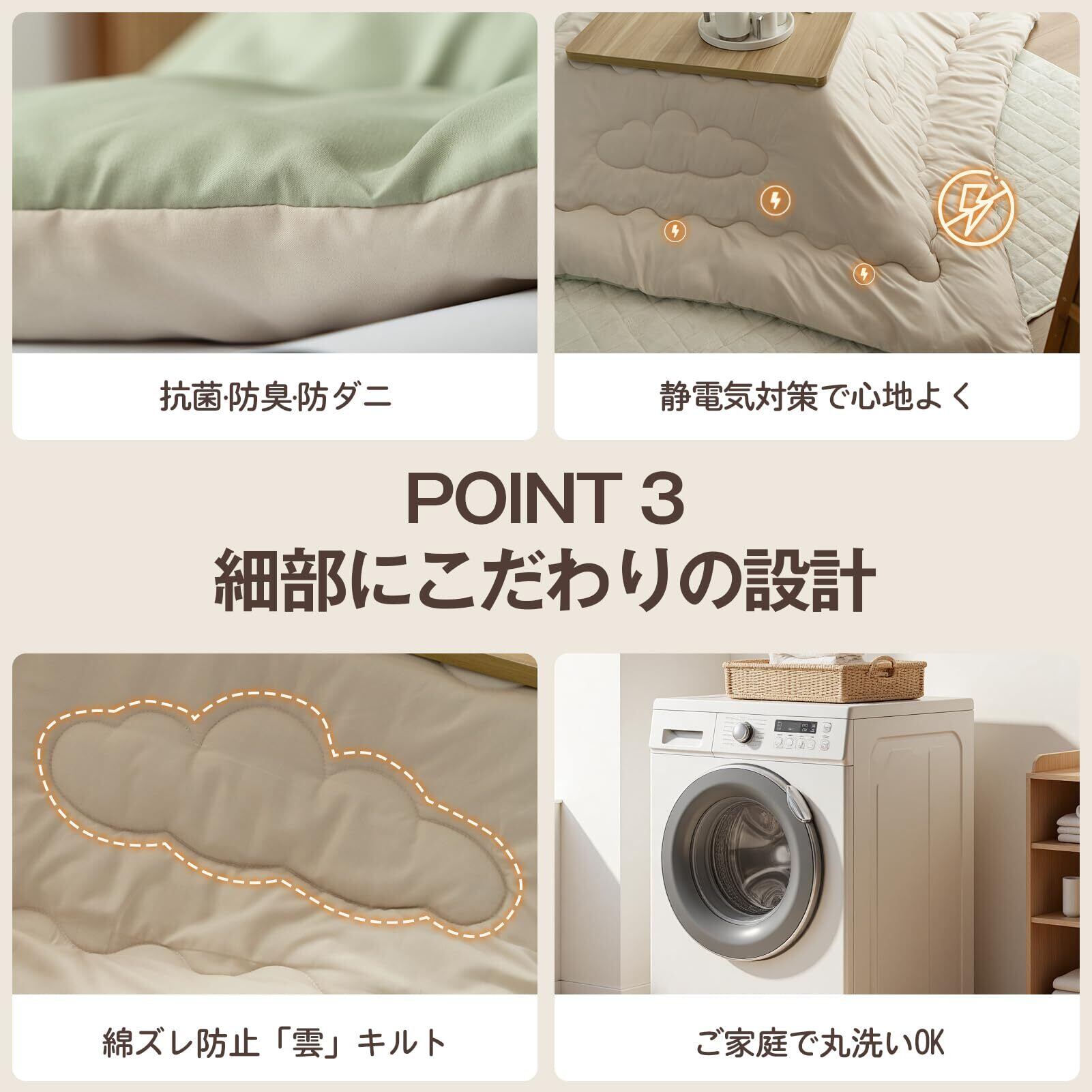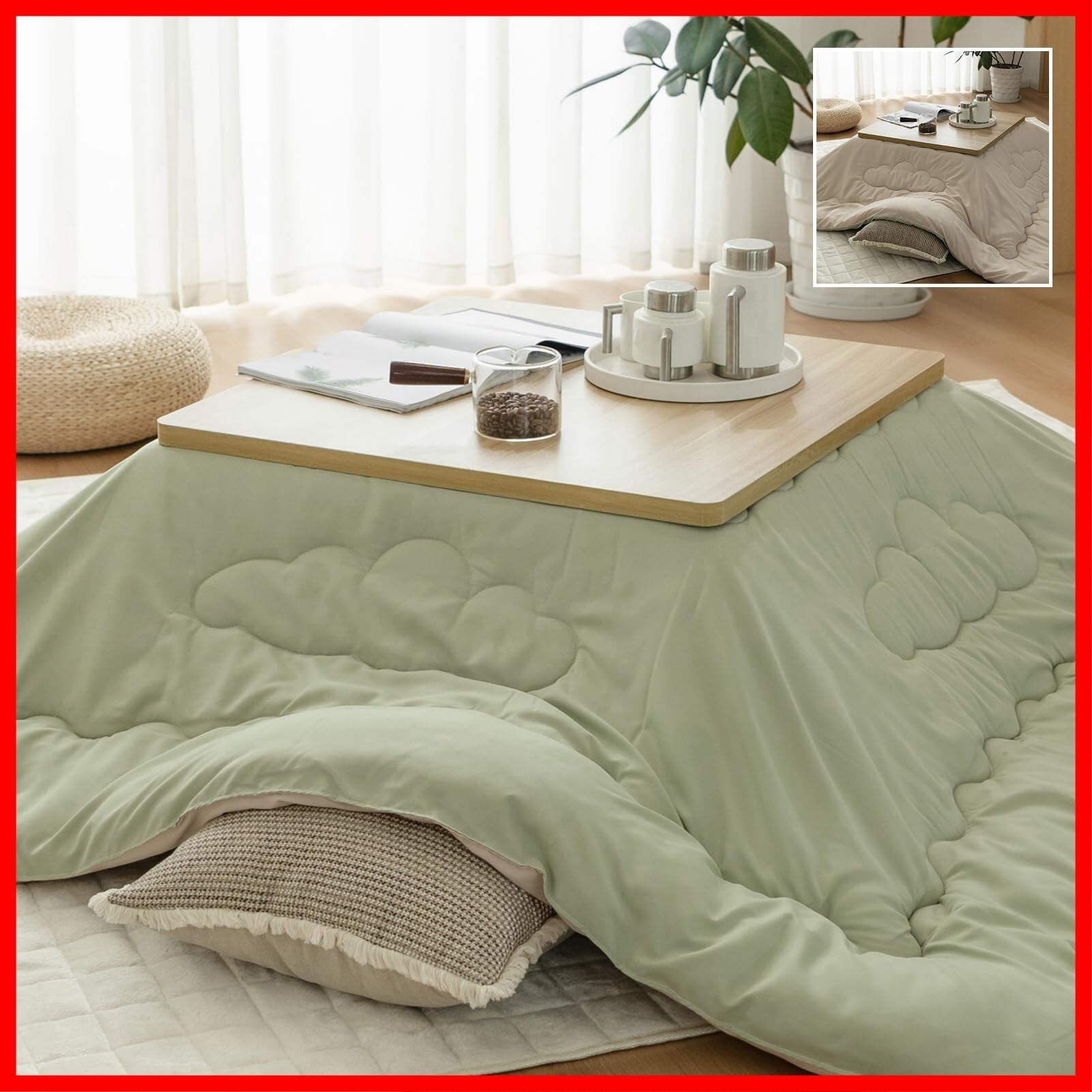 【2022最新】OIGAE こたつ布団 長方形 単品185×235cm 【雲】キルティング 吸湿発熱 リバーシブル ピーチスキン加工 綿ズレ防止 保温蓄熱 こたつふとん ふわふわ こたつ掛け布団 洗える 抗菌防臭 火燵布団 静電気防止 毛抜けにくい 可愛い コタツ布団 ベージュ・グリーン | Cherry Blossoms