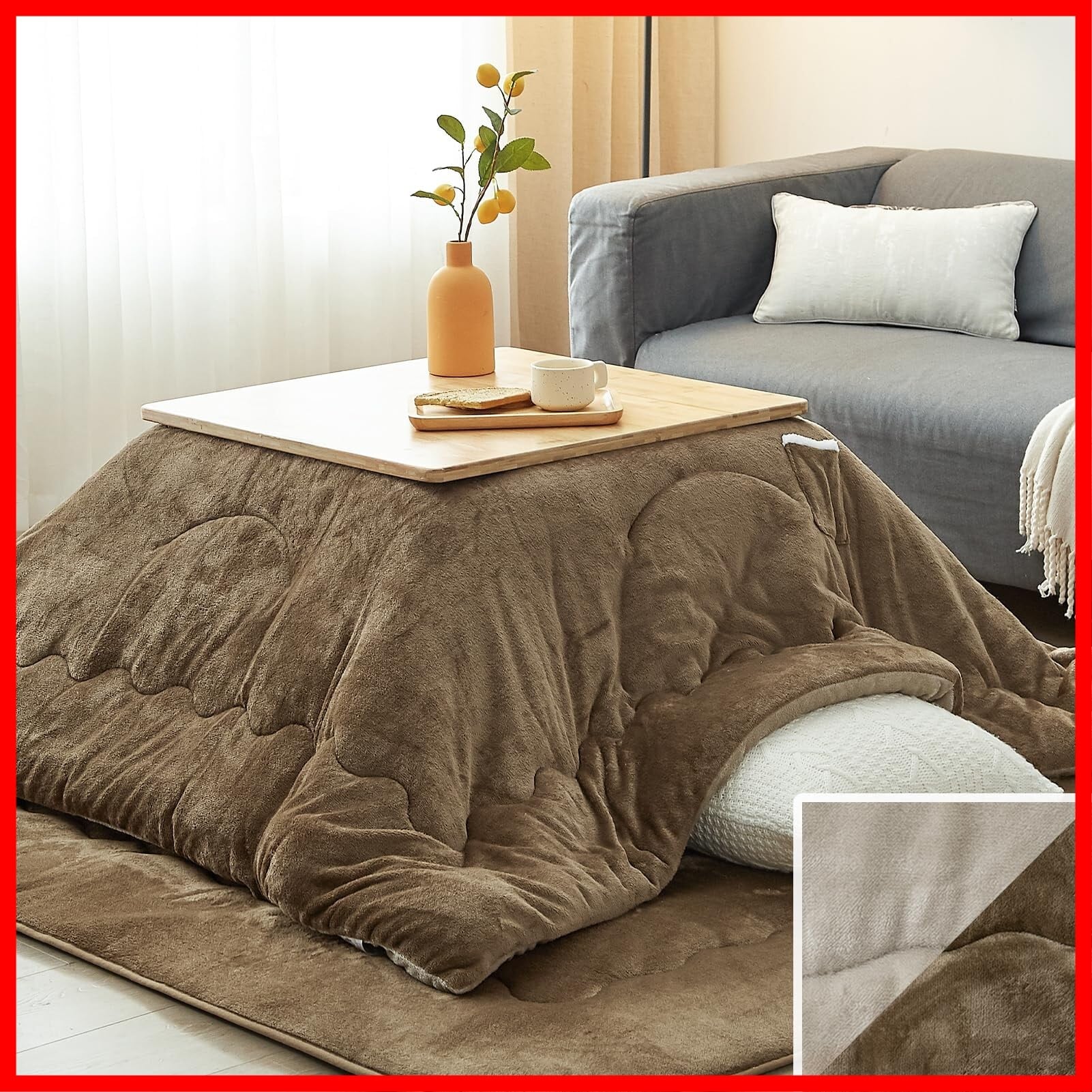 【新着商品】VK Living こたつ布団 正方形 単品185×185cm 中綿1.5kg 【SUPER HOT】 発熱綿使用+LockHeat速暖発熱繊維 撥水加工 ポケット付き フィットキルト こたつ掛け布団 リバーシブル 両面使える フランネル 24時間持続制菌消臭 保温性 丸洗いOK 静電気防止 毛抜けない ベージュ/ブラウン | Cherry Blossoms