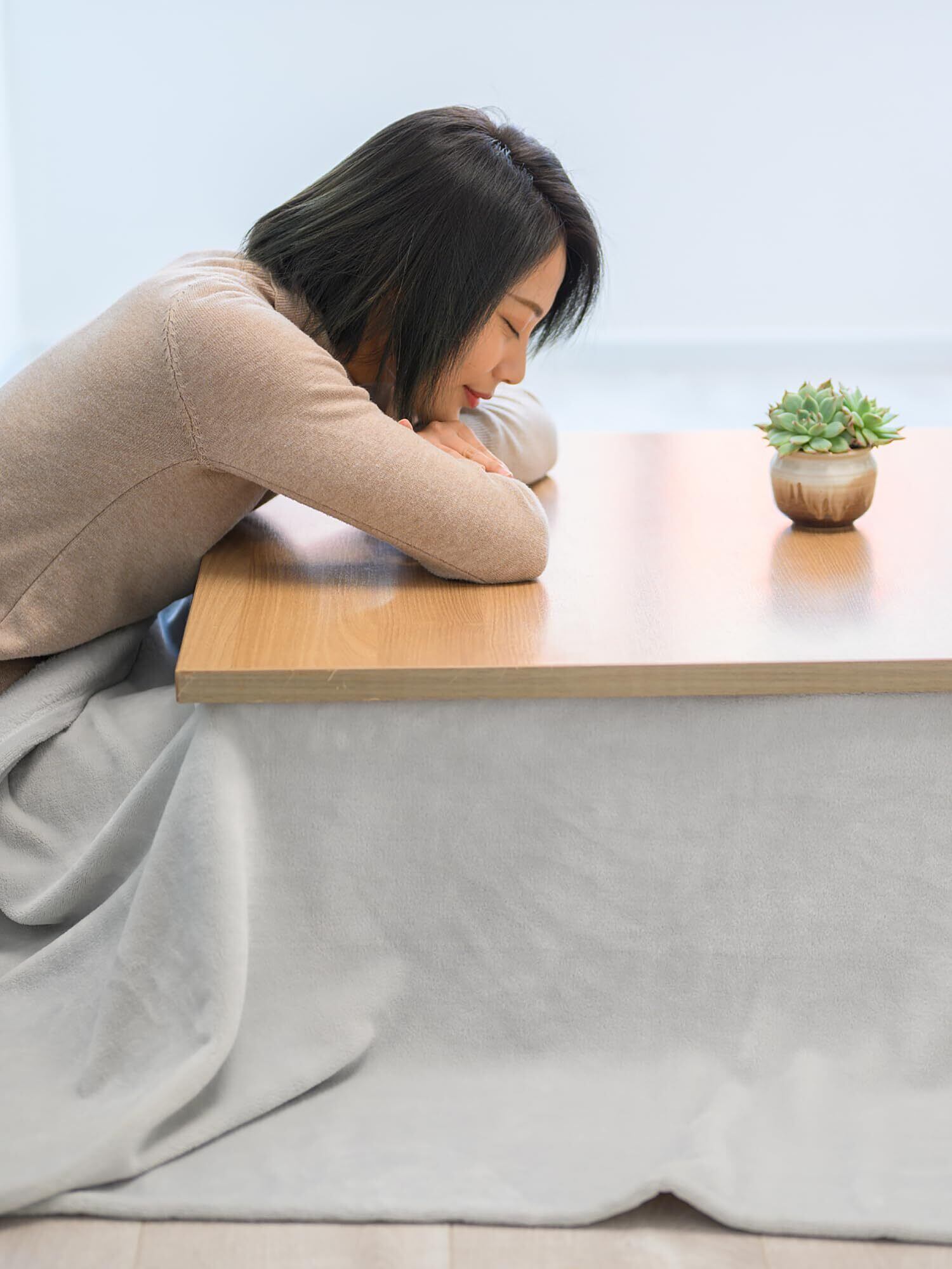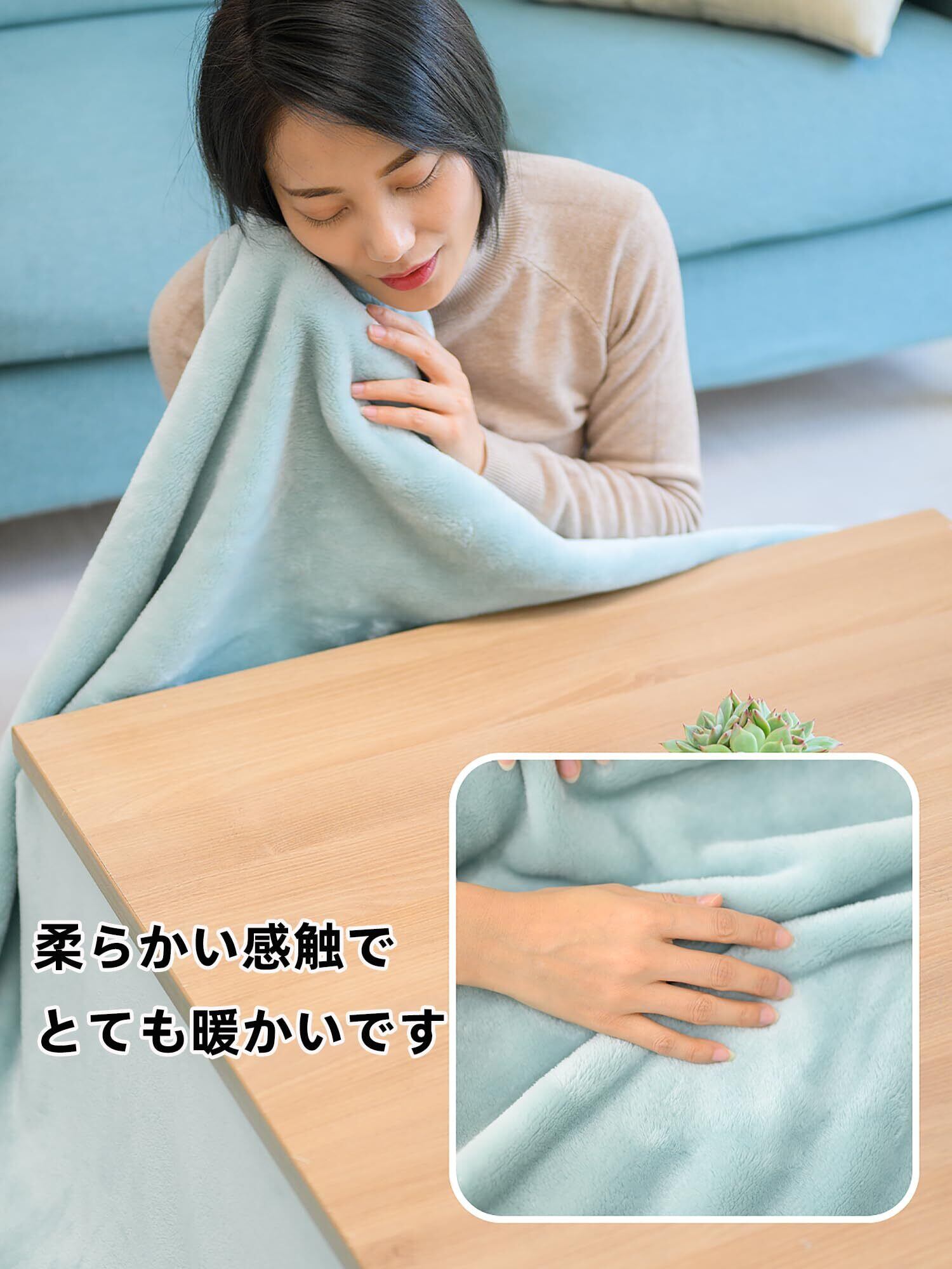 【軽量・省スペースデザイン】標準型のこたつ布団に比べ、見た目スッキリです。こたつ中掛け毛布は軽量で薄いため、持ち運びや収納がしやすく、こたつ布団と重ねたご使用に適しています。