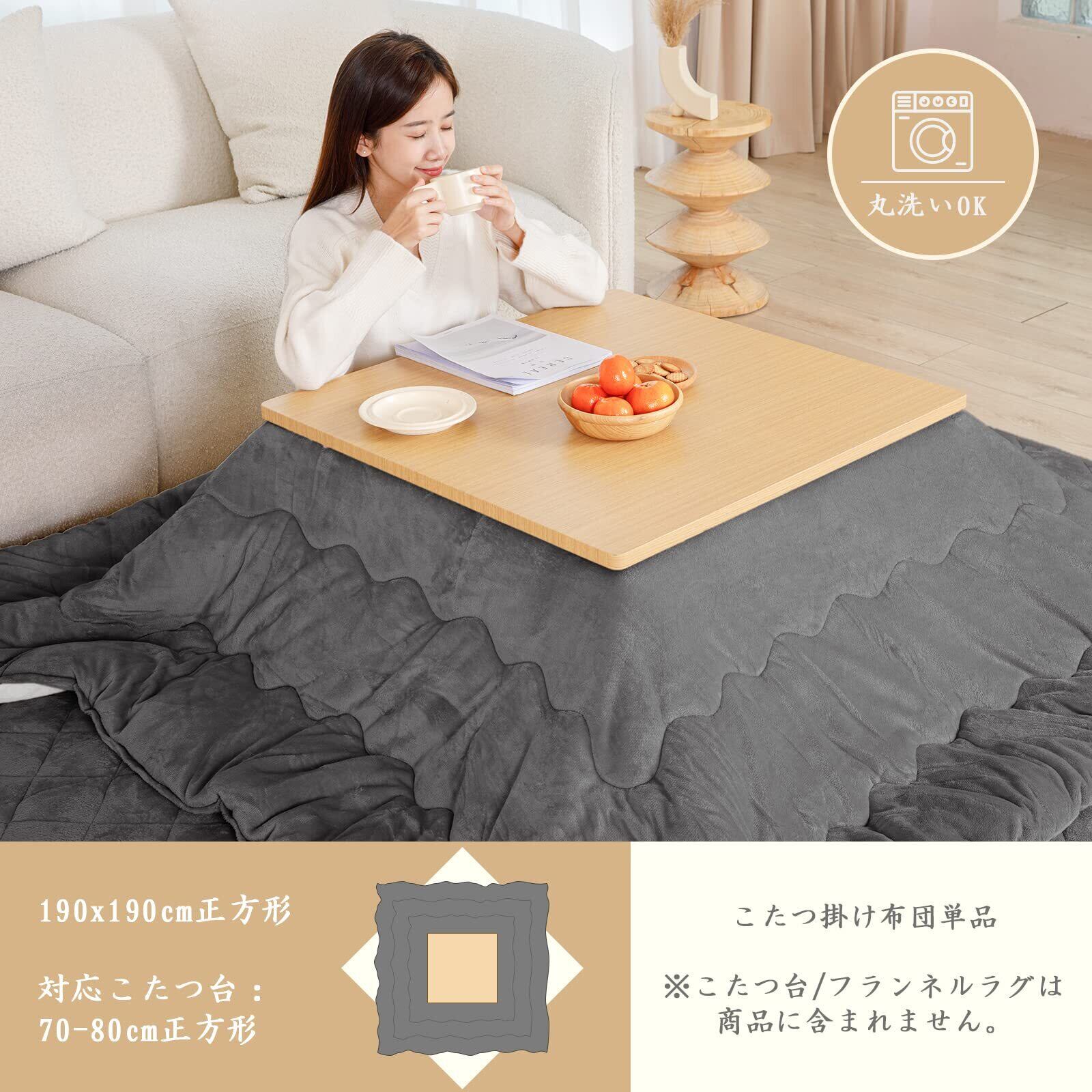 Vamcheer こたつ布団 正方形 こたつふとん 単品 190x190cm こたつ用布団 あったか こたつ掛け布団 厚手 フランネル リバーシブル 両面使える ふわふわ ぽかぽか ぬくぬく 冬用 洗える 静電気防止 毛抜けない ライトグレーxダークグレー