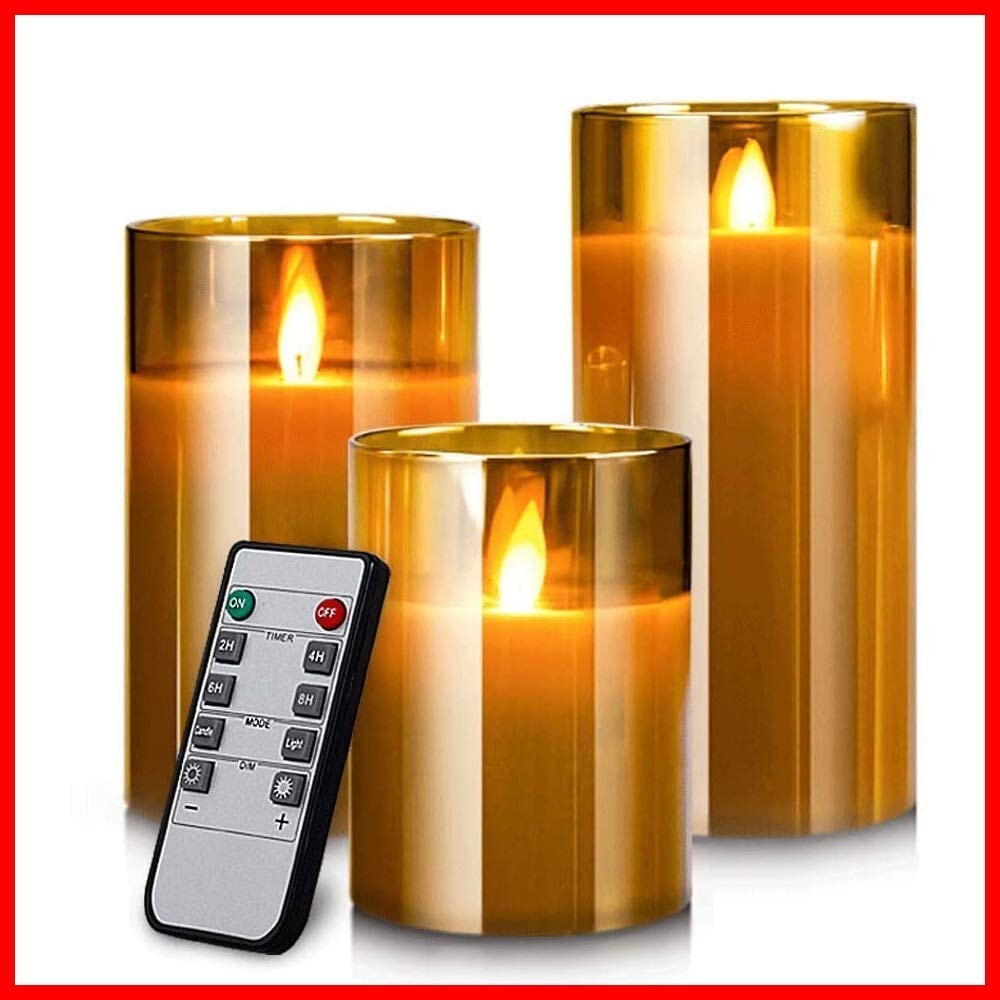 【2022最新】AnnTec LEDキャンドルライト ledグラス ゴールド ロウソク 本物の炎のようにゆらめく3点セット 暖色光 火を使わない ゆらゆら揺れる 安全 省エネ 専用リモコン付き 明るさ調整 電池式 LEDライト キャンドル | Cherry Blossoms