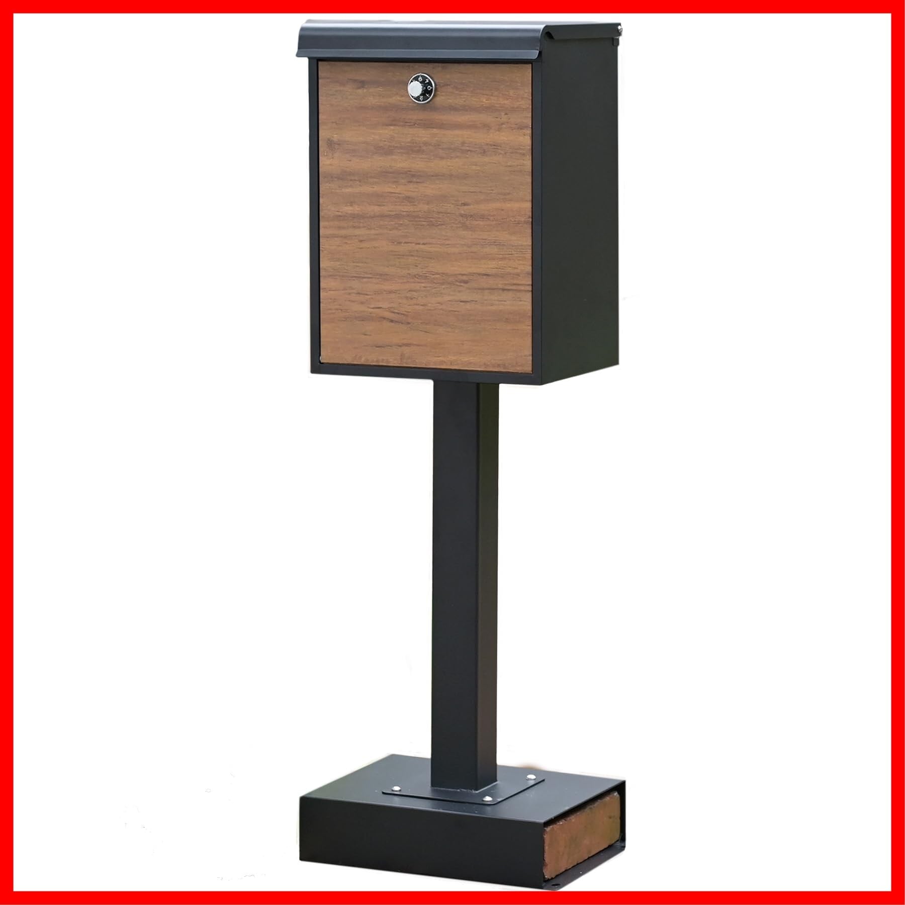 ガーデンマスター(Gardenmaster) 郵便ポスト 置き型 屋外 防水 スタンド型 郵便受け 幅35.5×奥行24×高さ99cm YTX0055-1 ブラック/木目調