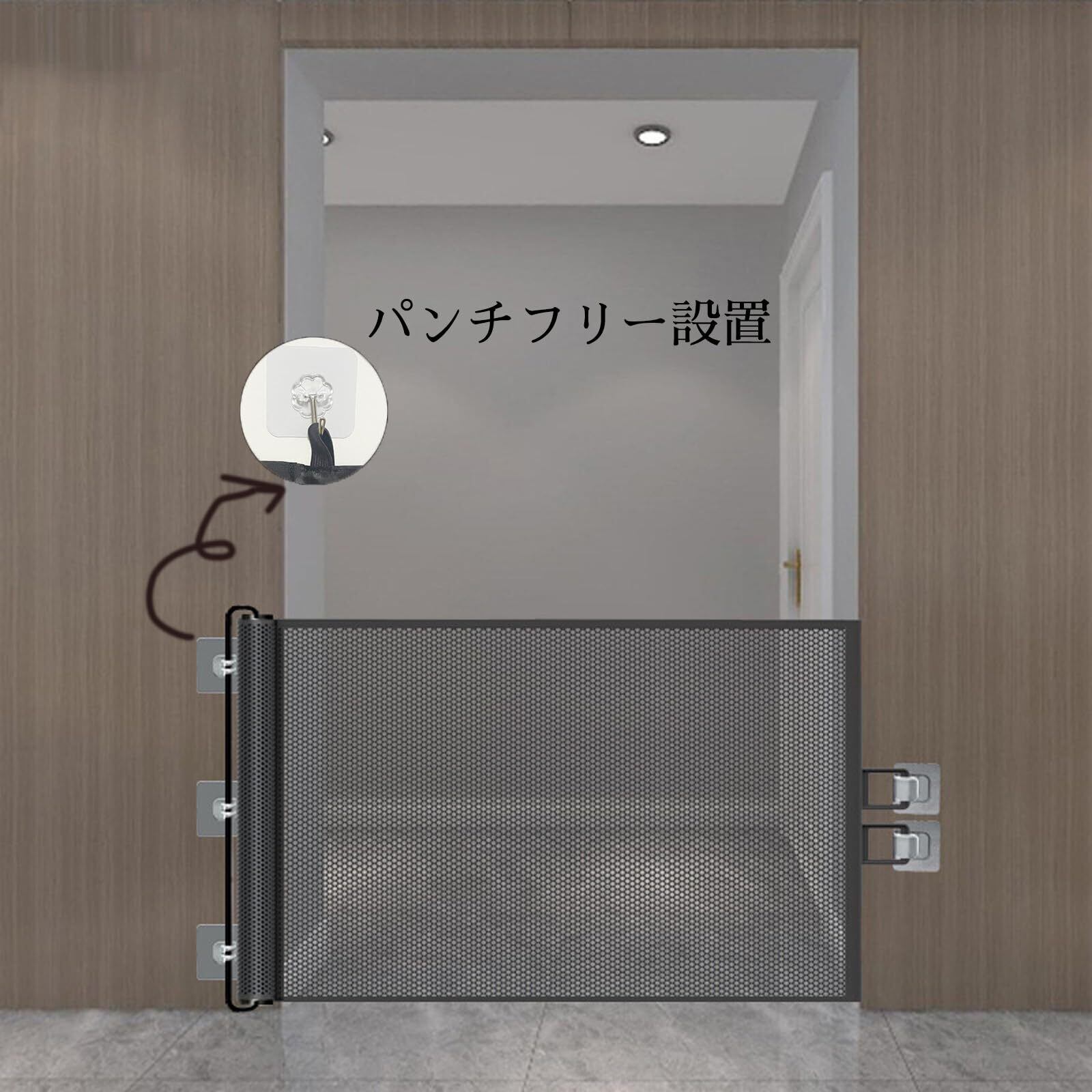「このベビーゲートで、お子様やペットの安全をしっかり守りましょう!」/特徴:ロール式のデザインが魅力で、簡単に伸縮できるので、必要な時だけサッと使えます。階段や入口に設置することで、安心して日常生活を楽しむことができます。