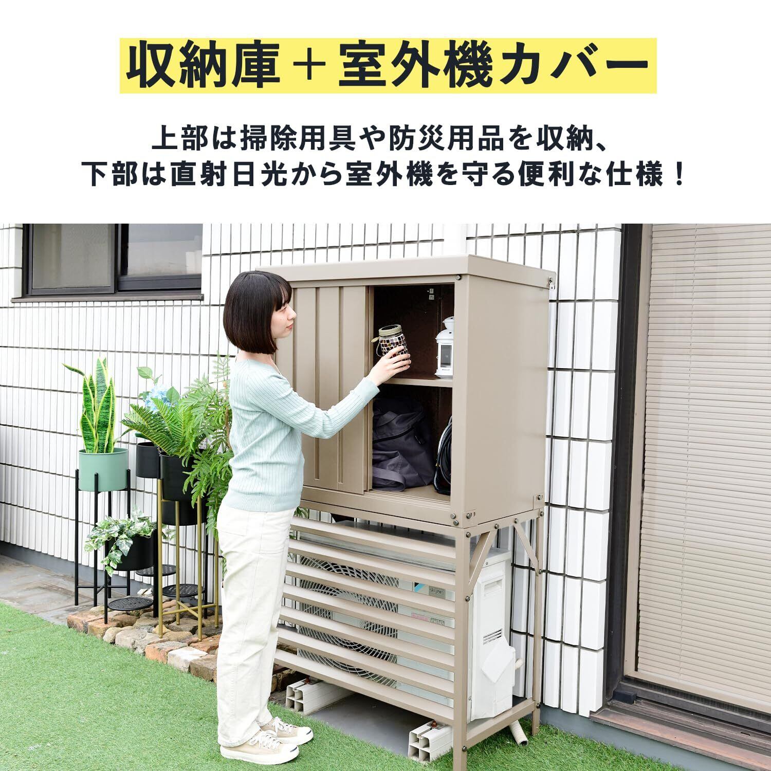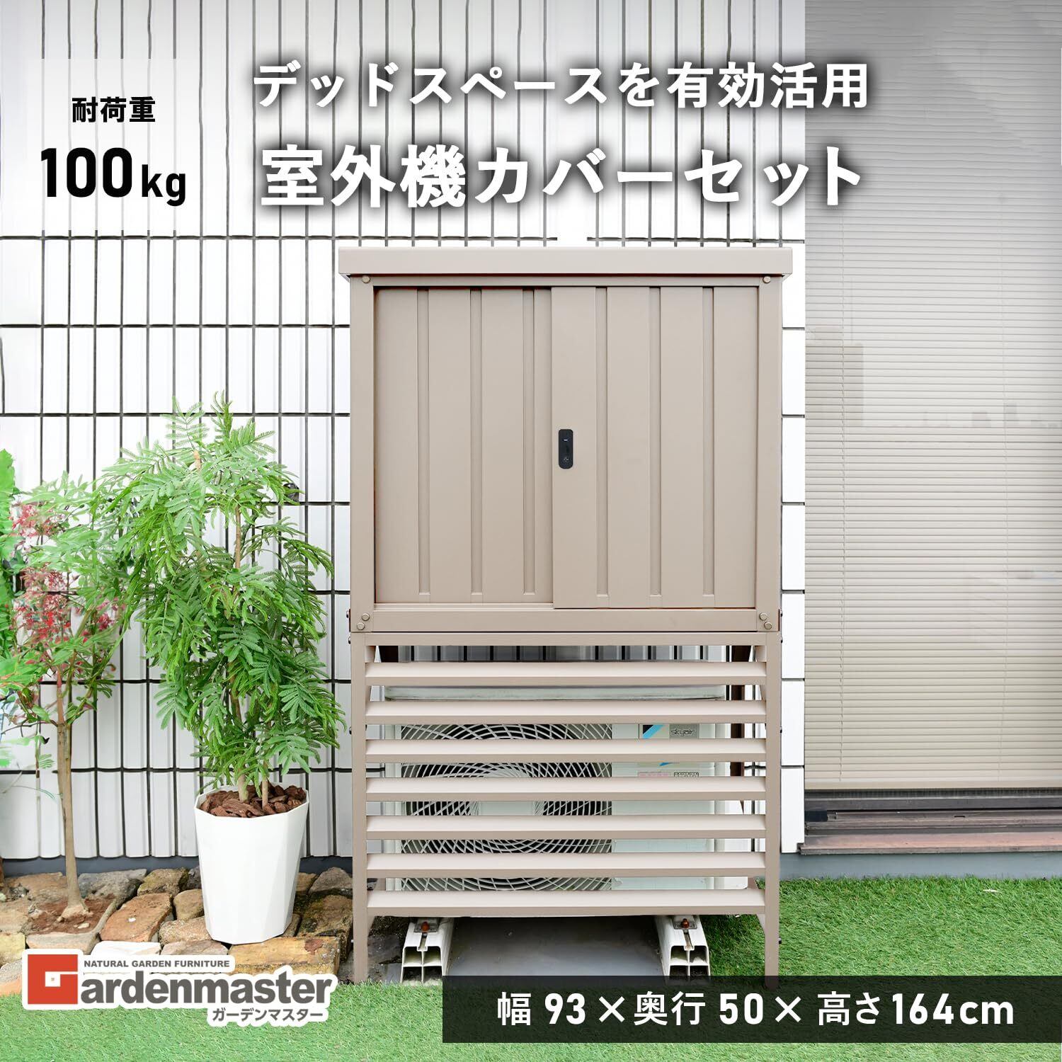 【特価商品】ガーデンマスター(Gardenmaster) 物置 屋外 収納庫 室外機カバー セット 幅93×奥行50×高さ164cm 二重構造鍵付き スチール 転倒防止設計 可動棚板付属 室外機ラック エアコンラック TSC-98+DSSB-098K サンドベージュ | Cherry Blossoms