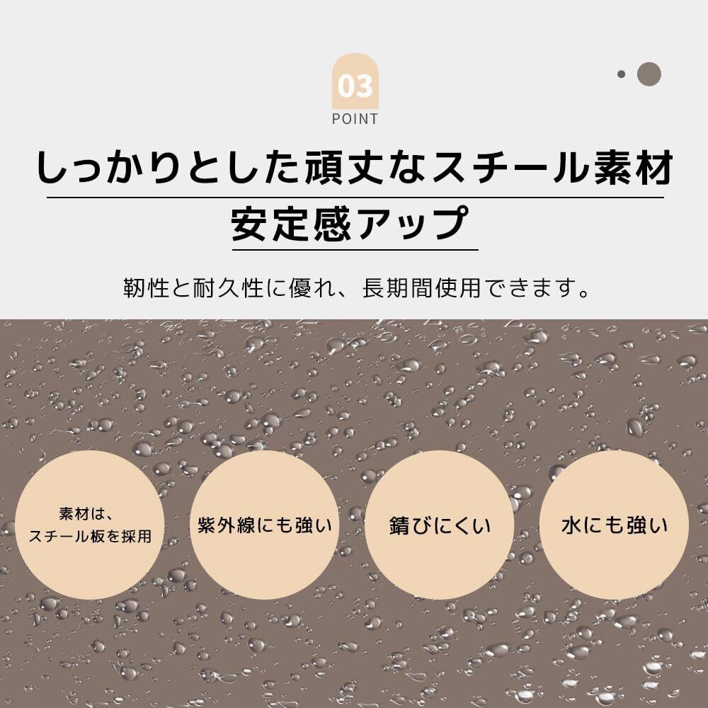 【しっかりとした頑丈なスチール素材 安定感アップ】素材は、スチール板を採用 にも強い 錆びにくい 水にも強い靭性と耐久性に優れ、長期間使用できます。外部からの強度を高める凹凸のある壁面 壁面の鉄板は、凹凸を付けることにより、平たい鉄板と比べて外部からの衝撃に強くなっています。