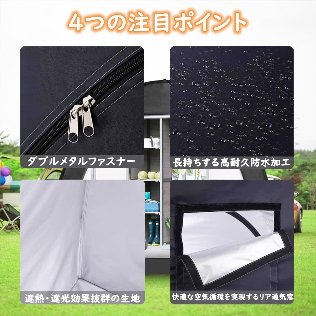 サイズ:4台収納可、素材:厚手生地・UV加工シート、特徴:撥水加工・簡単組み立て・収納袋付き