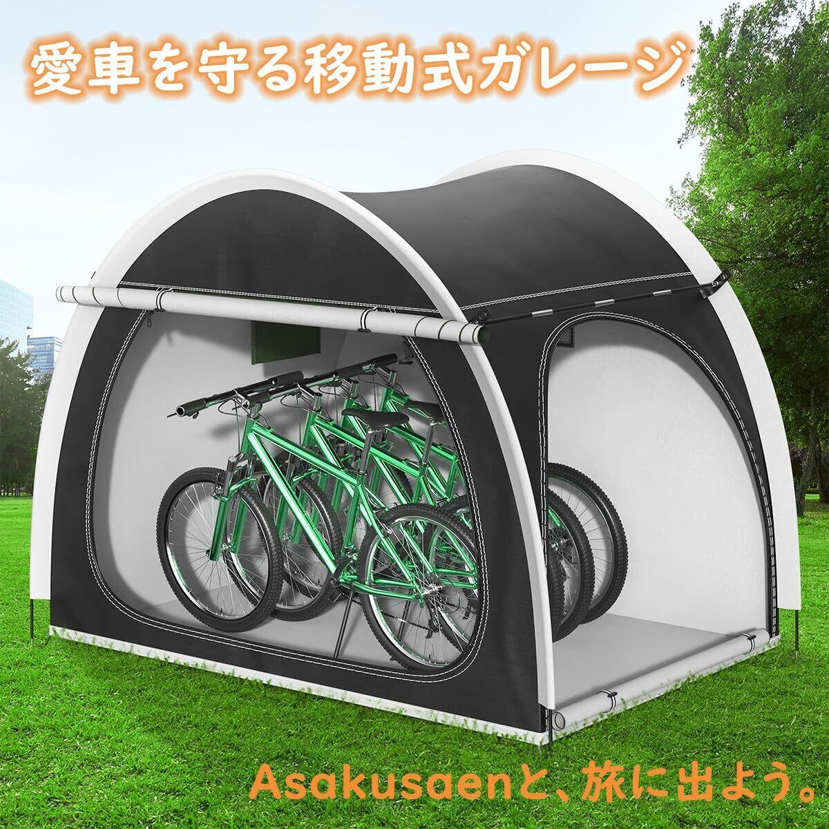 Asakusaen サイクルハウス 自転車置き場 4台まで収納可能 収納袋付き バイクガレージ UV加工シート・遮熱・撥水加工 屋外 大容量 組み立て簡単 厚手生地 自転車倉庫 頑丈 ブラック
