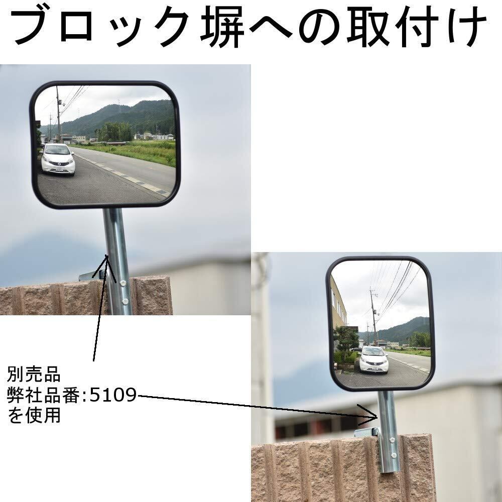 このガレージミラーは、四角形のデザインが特徴で、距離感をつかみやすいです。最大約20mまでの距離をしっかりと確認できるため、駐車や出入りの際に安心してお使いいただけます。