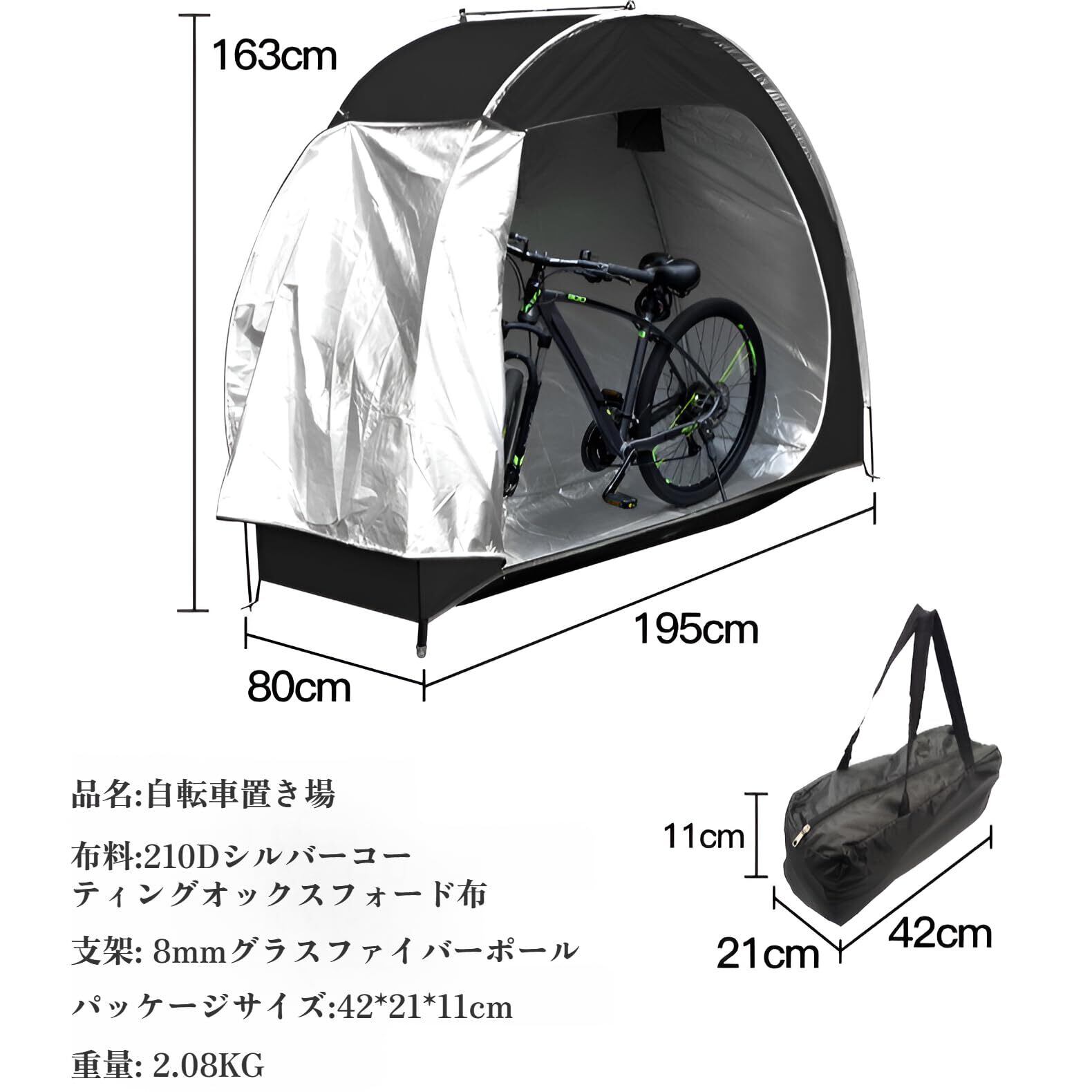 【商品名】自転車カバー●日差しや雨から自転車を守る●収納室付き●持ち運びに便利な折りたたみ式【製品詳細】1 自転車テントは210Dシルバーコーティングのオックス生地で作られており 耐摩耗性 耐引裂性 防性 耐性に優れ 悪候下自転車を安全に乾燥させる2 8mmのグラスファイバー製ポールブラケットは しっかりとしたをし 簡単かつ迅速に取り付けることができ 固定が容易で 時間と労力を節約します3 小物の収納に便利な収納ポケットを内蔵し 通気性の良い窓は空気の循環を保つように設計されているため 湿気を防ぎ 物を乾いた状態に保つ4 屋外でのサイクリングやキャンプなどのシーンにで 日差しや雨から保護し サイクリング用品の収納や補給に便利5 軽量で持ち運びしやすく コンパクトに折りたたみでき 重さはわずか2 08kg※※※予めご了承ください: の画像は実際撮影で、角度、光線、お使いのモニターやデイスプなどによって画像とニュアンスが違って見える場合があります※※※