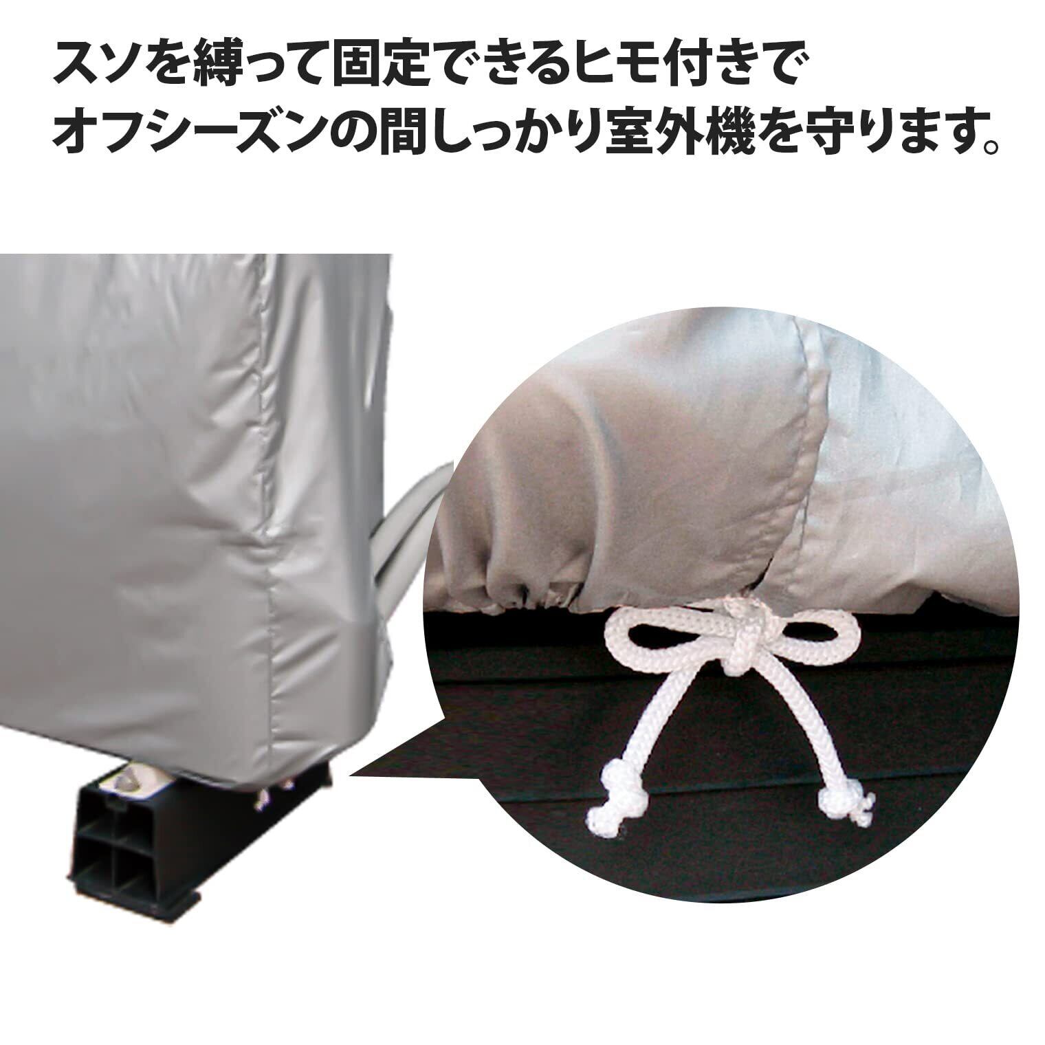 スソを縛って固定できるヒモ付きでオフシーズンの間しっかり室外機を守ります。