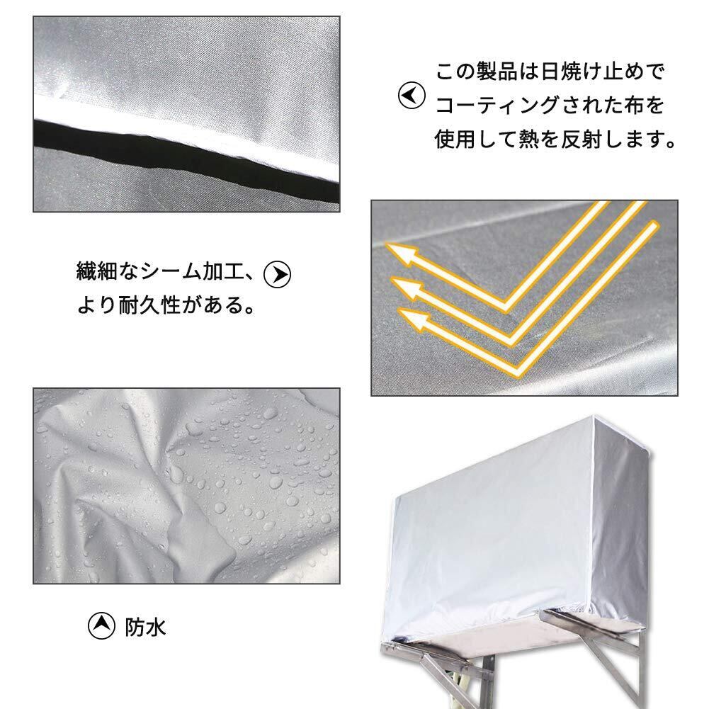 サイズ:標準的な室外機に対応、素材:ポリエステル、特徴:防水、防塵、遮熱、調整可能なロープ付き、オールシーズン対応