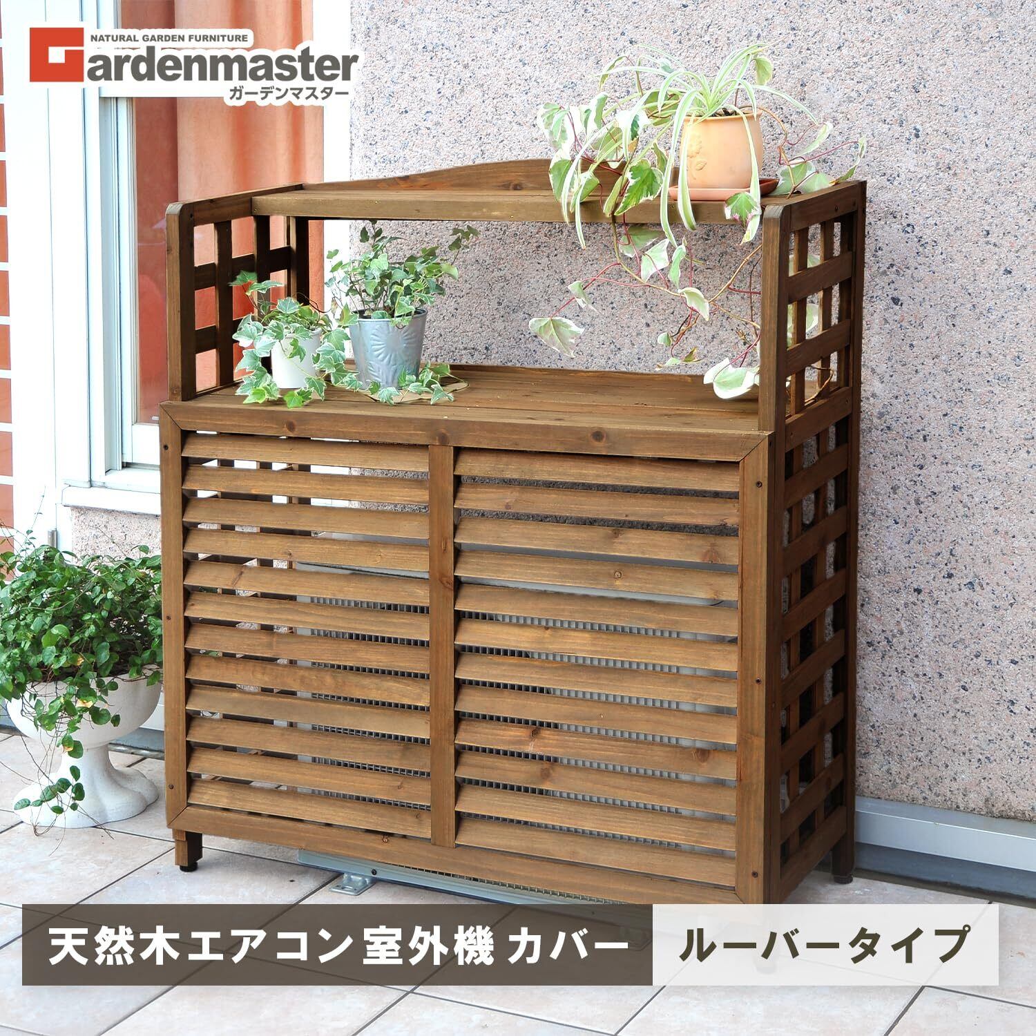 【新春セール】ガーデンマスター(Gardenmaster) エアコン室外機カバー 棚付 幅95×奥行39×高さ111cm 天然木杉材 エアコンガード ベランダ バルコニー ガーデンマスター ブラウン ACGN-02 | Cherry Blossoms