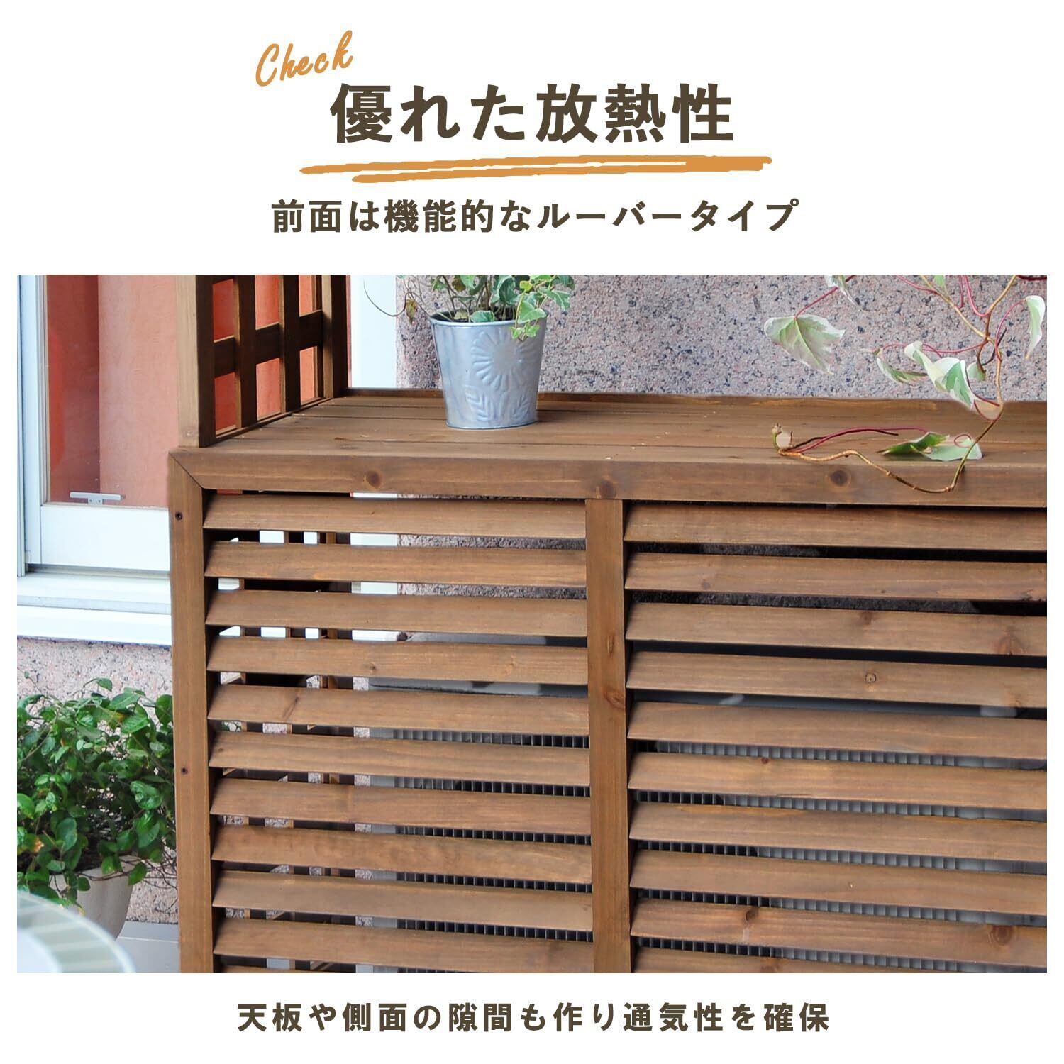 本製品は、エアコン室外機を隠すだけでなく、上部に棚が付いているため、観葉植物や季節のデコレーションなどを置くことができます。空間を有効に活用し、インテリアとしてもご利用いただけます。