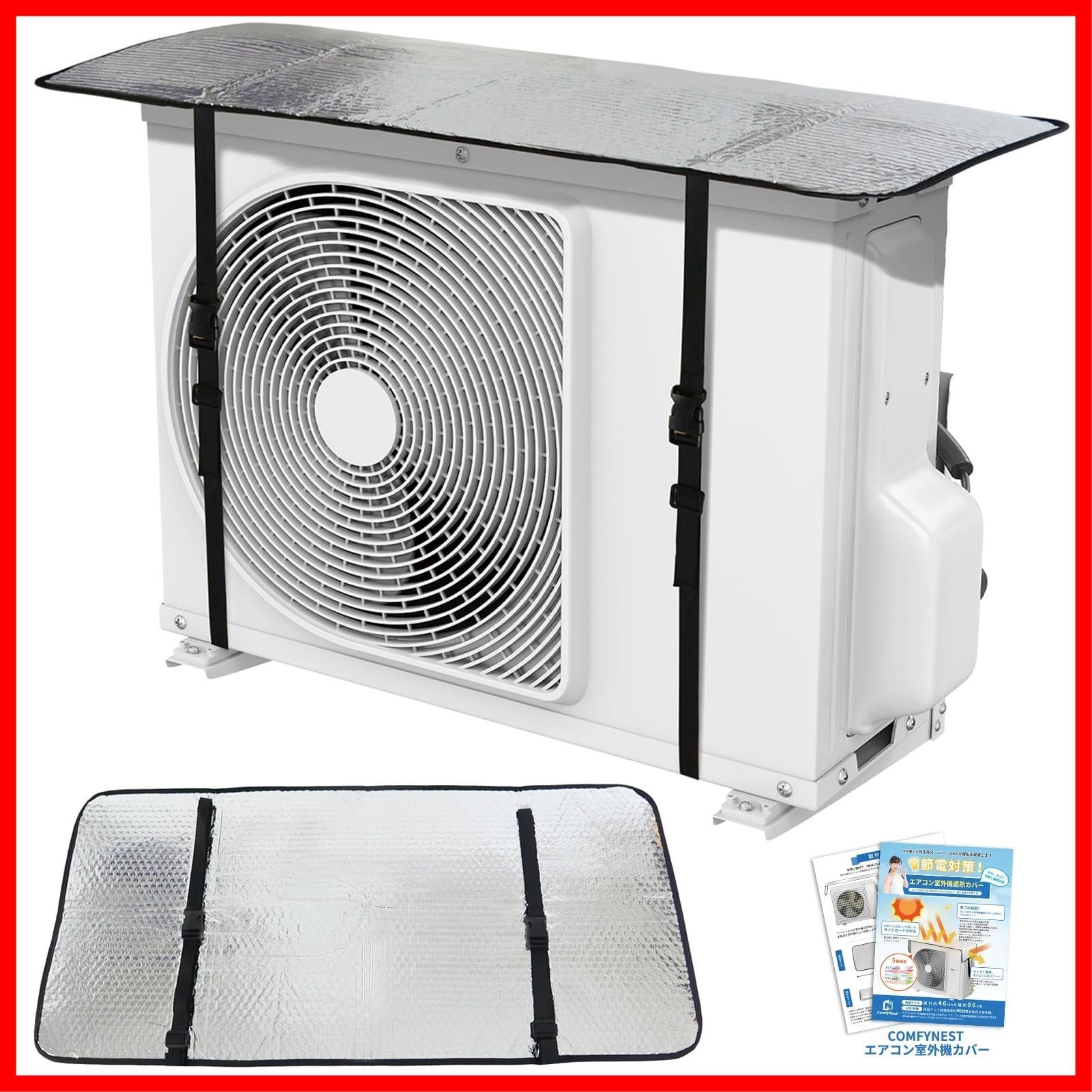 Comfynest 室外機カバー エアコン室外機カバー 日除け 秋 冬 暖房 防雪カバー 防塵保護 耐候 遮熱シート ベルト固定タイプ 多様タイプ 95×45cm エアコンシツガイキ 室外機保護カバー 節電 遮熱 遮熱保護 取り付け簡単 省エネ