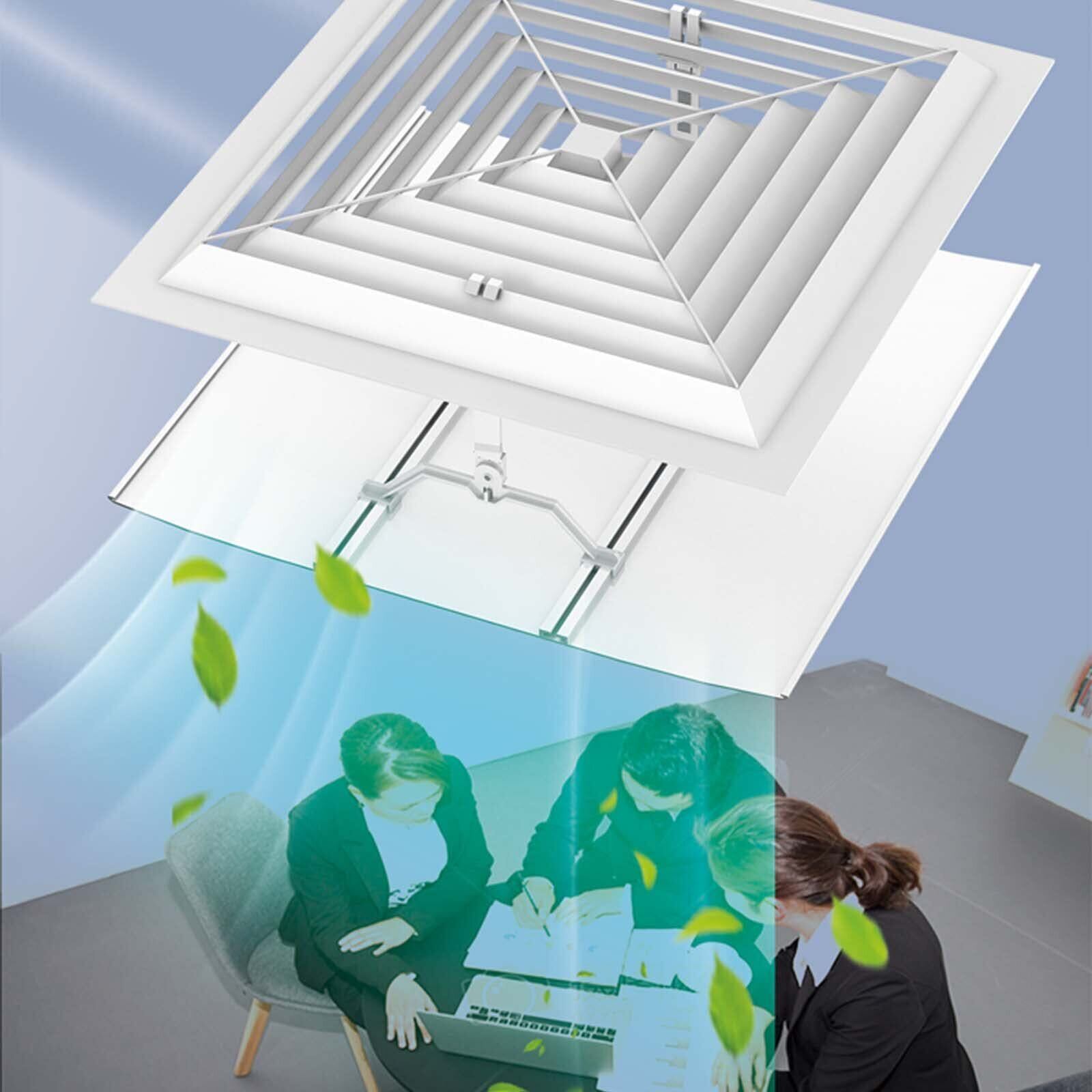 「このエアコン風よけで、快適な空間を実現しましょう!」/特徴:天井通気口用に設計された、エアコンの効率を最大限に高めるための正方形のディフレクターです。