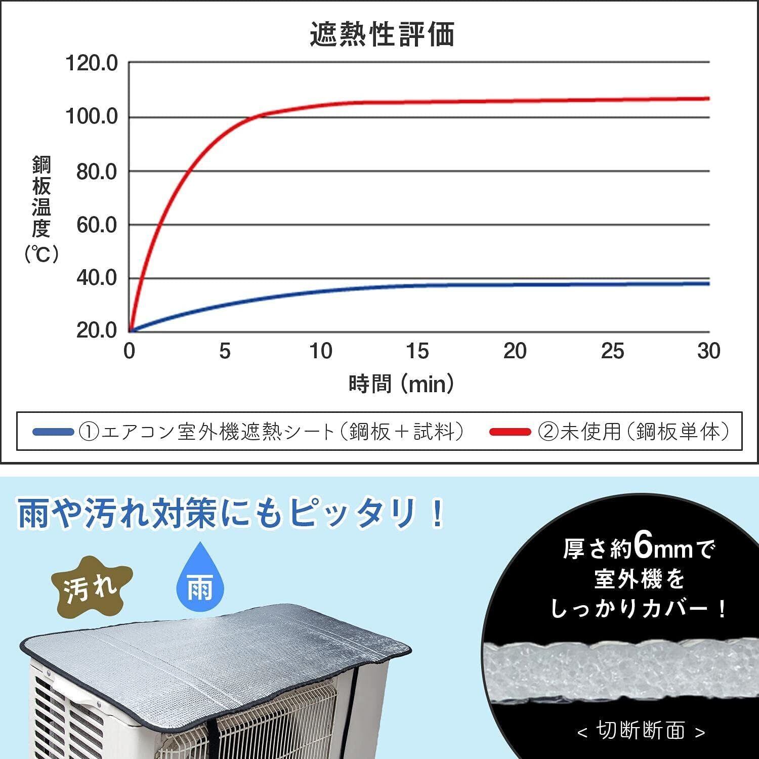 【3層構造、省エネ、節電】エアコン室外機カバーで最新高品質のアルミ素材を使用、3層構造の遮熱シートで、約45%の熱線をカットし。室外機を日差しからガード!同時に、夏の冷房効率をアップさせ、省エネも実現!