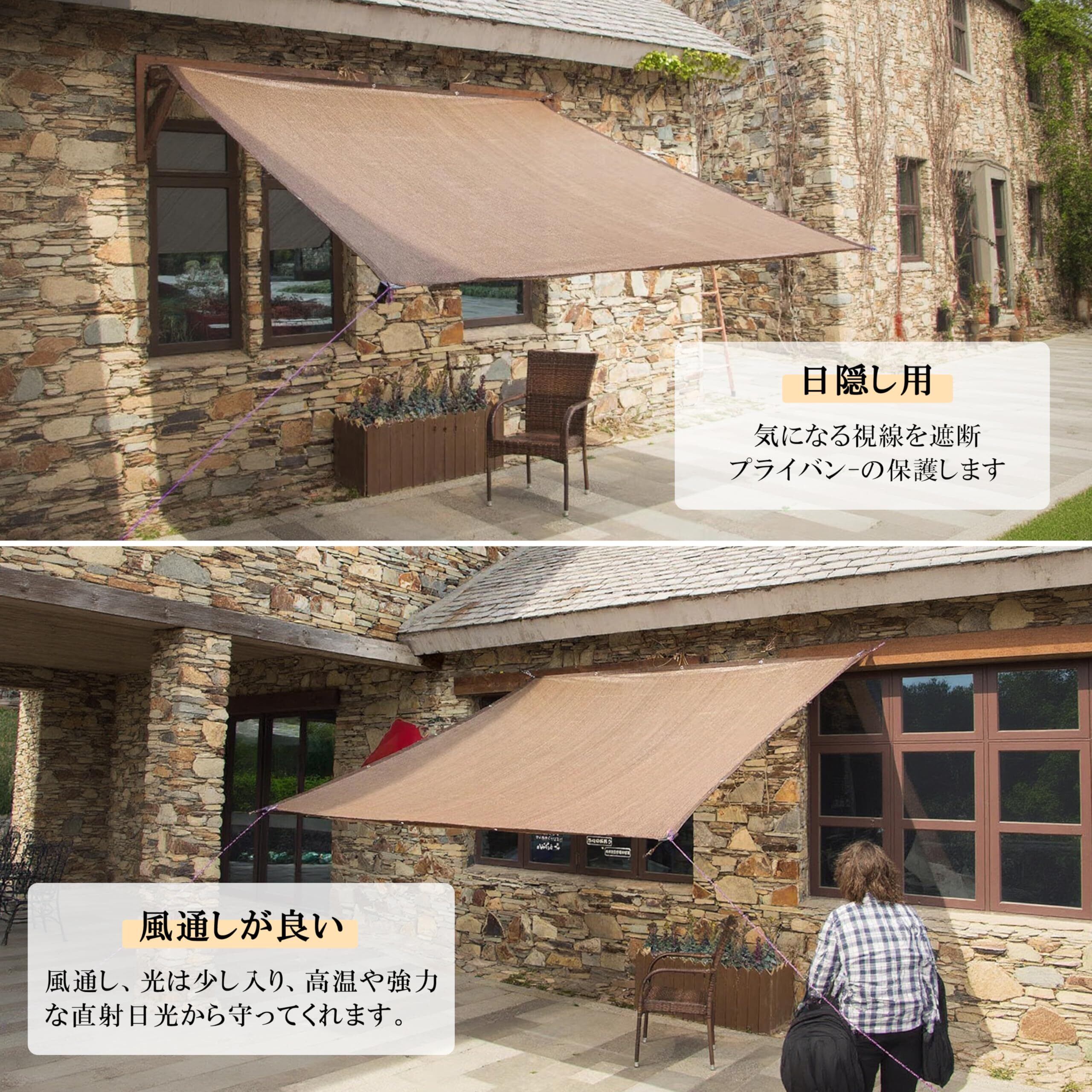 【製品仕様】遮光ネットのサイズ:2m×2m;色:コーヒー色;耐久性に優れた高密度なポリエチレンを使用した日よけシェードです。