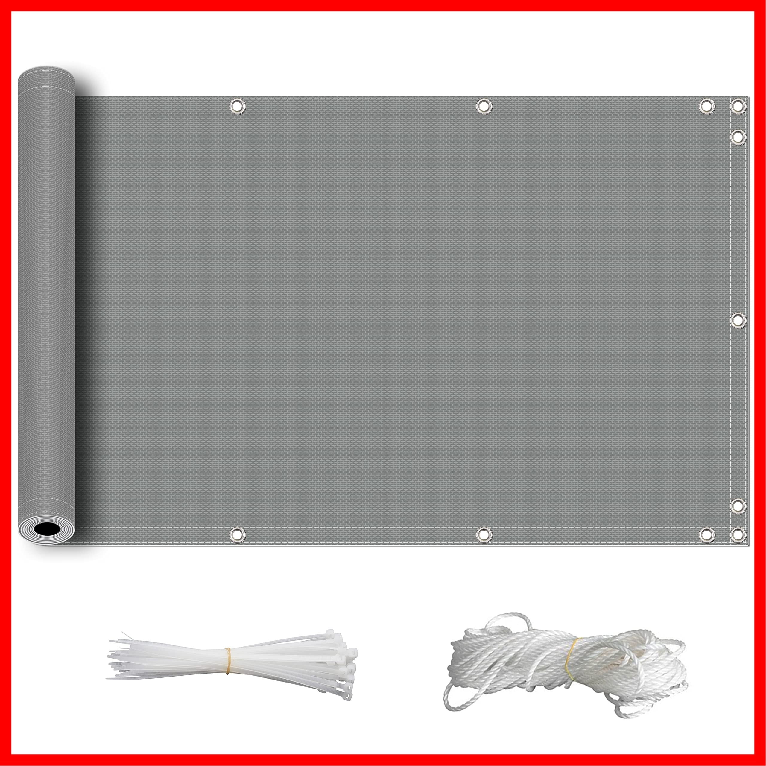 ZQXFZ 目隠し ベランダ シェード 90x200cm 手軽に隠せる 明るくても暑さを遮る 屋上にちょうどいい遮光性と風通し 付属品も付いていて簡単に設置できた ベランダ 目隠し -グレー.