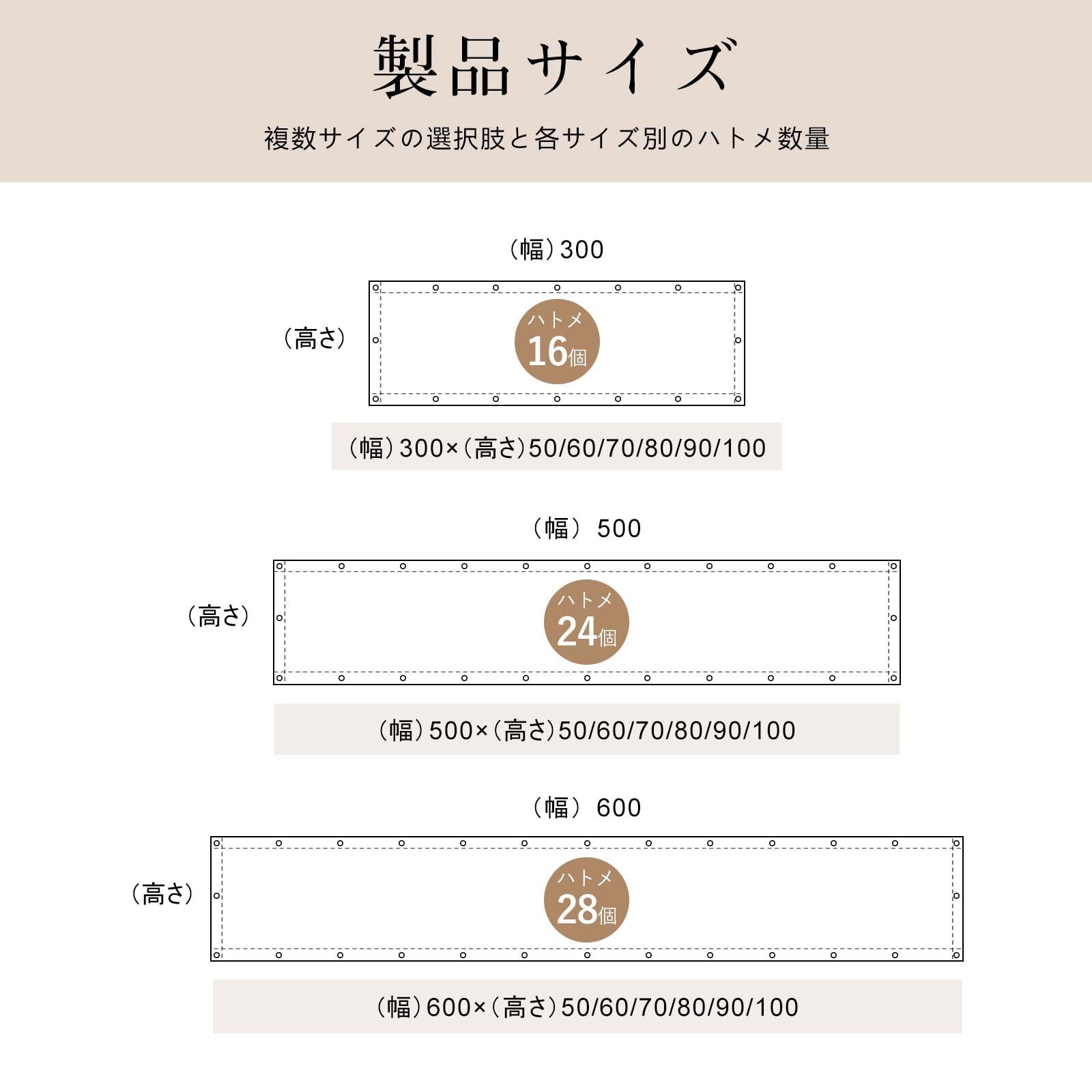 生地の両端にボタンホール加工が施されているので、取り付けには付属の取付バンドをご使用ください。取付金具・パーツ(別売)を使用することで、設置・固定が簡単になります。