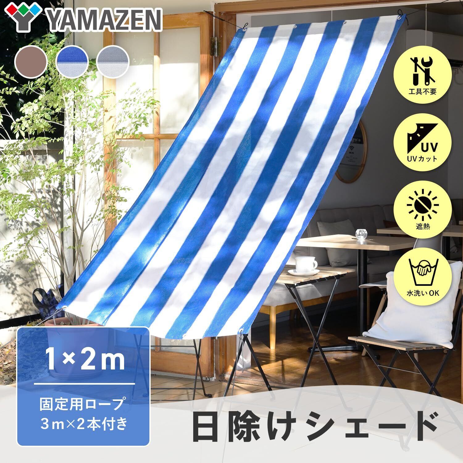 【2022最新】山善(YAMAZEN) 日除けシェード 100×200㎝ 取付金具セット 水洗い可能 ハトメ8箇所 UVカット率約82% 節電 省エネ ベランダ 紫外線カット 防水 涼風 ブルー/ホワイト YRGS-1020 | Cherry Blossoms
