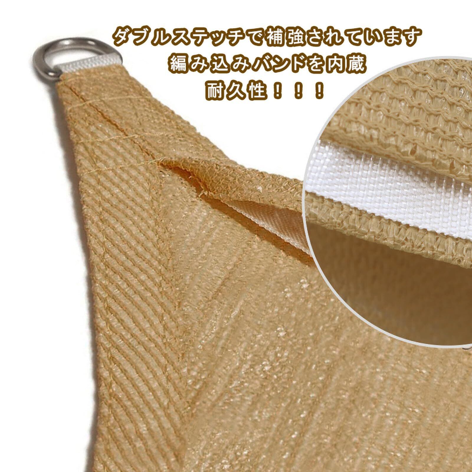 【D型リング連結金具】耐久性に優れ厚手の高密度なポリエチレンを使用した日よけシェードです。四隅には丈夫な金属製Dリングを採用し、四辺には連結金具として150KGの張力ロープを内蔵しています,製品本体をオーバーロックに使用,落ちにくく、より耐久性に優れています!!!耐久性に繰り返してテストされて、機能性・実用性も含めて、細部まで丁寧に作り上げられております。