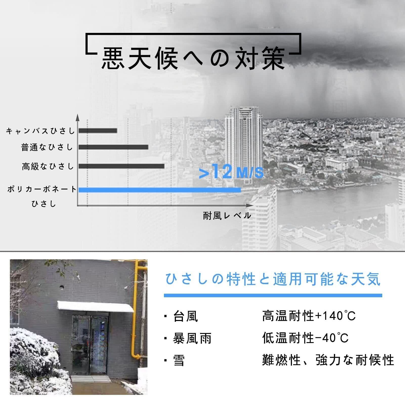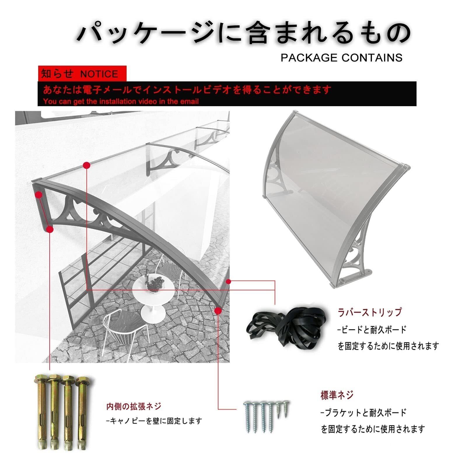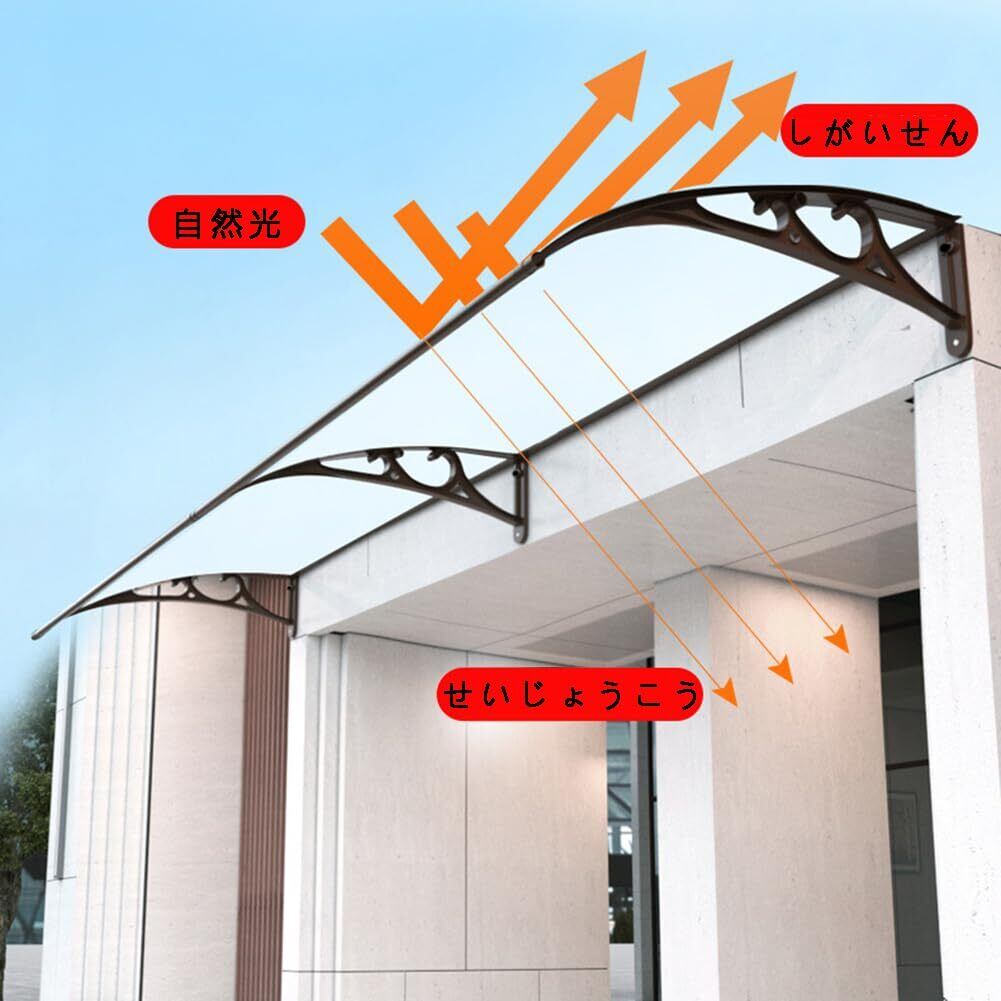 「このBunny Earsのひさし屋根で、玄関周りの快適さを向上させましょう!」/特徴:80x200cmの広々としたデザインで、アルミブラケットが付属しており、しっかりと固定できます。