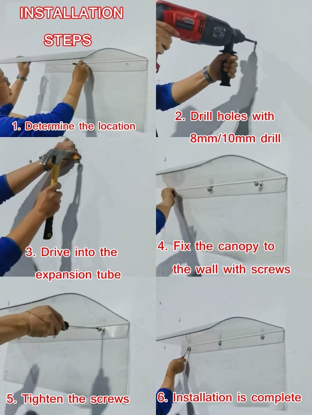 5、DIYは簡単に取り付けられ、組み立てる必要がなくインストールでき、とても便利です。複数の住宅用ひさしを組み合わせることで、より広い入口、窓、通路を覆うことができ、非常に頑丈で耐久性があります。