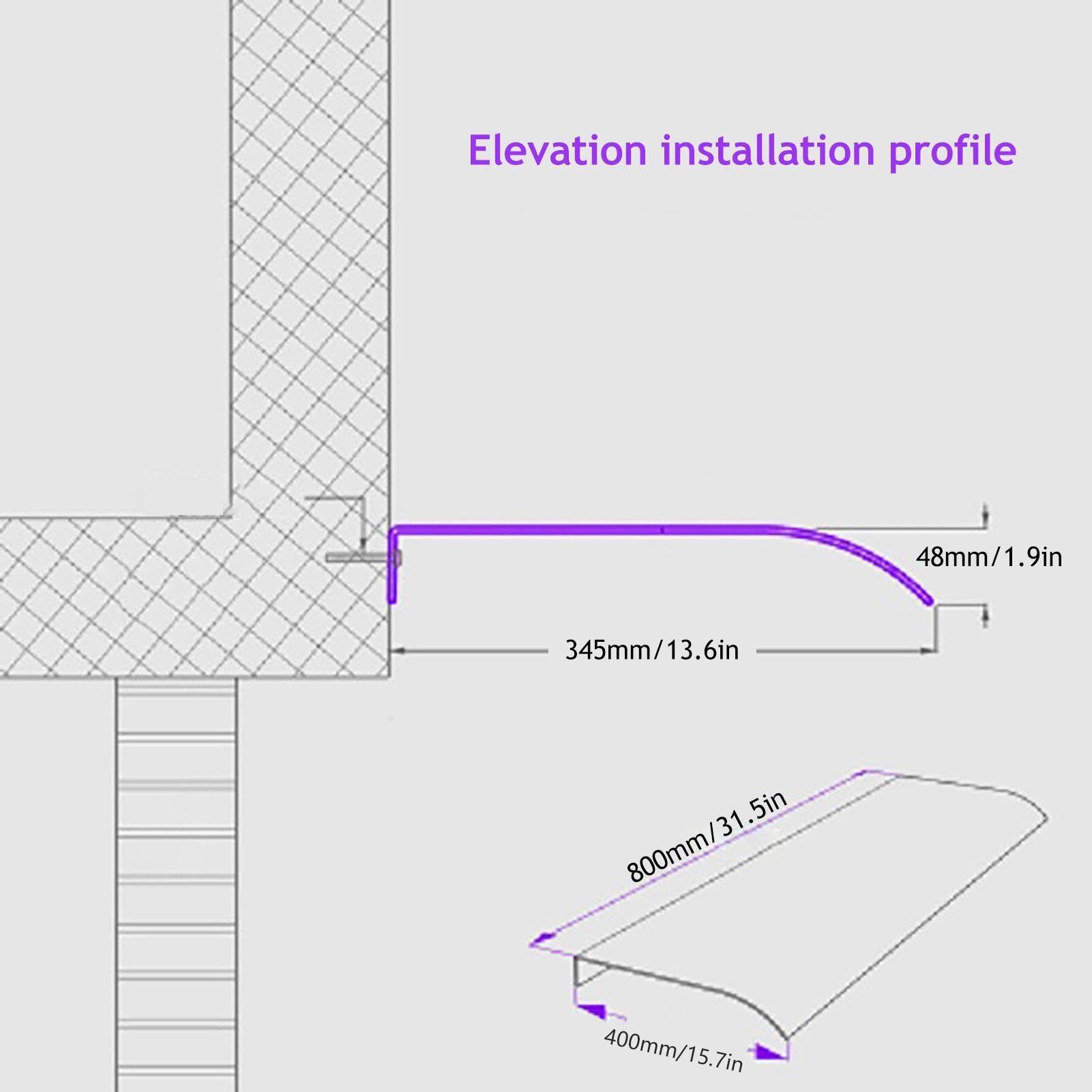 ひさし 簡易屋根 雨よけ 後付け 屋根ふきキャノピー ドア日よけ 外装 キャノピーテント ドアキャノピーオーニング ポリカーボネートドア 透明 耐久性 雨除け、庇、ポーチキャノピー、窓日よけ、ドアシェード、バルコニー、ガレージ、庭、店舗用レインキャノピー 透明 連接可能 設置簡単 ブラケット不要